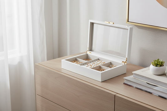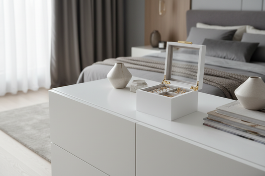Caixa de jóias Elegance branco e vidro