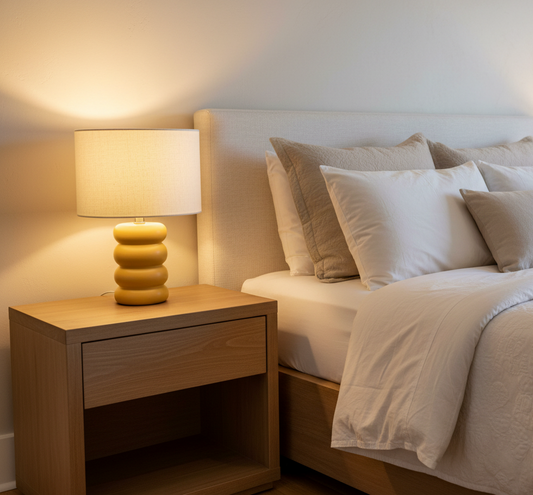 Candeeiro de Mesa Eva Linho Amarelo Ocre