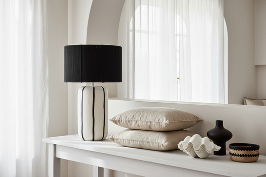 Candeeiro de Mesa Cerâmica Artesanal Riscas Preto e Branco