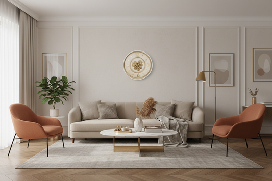 Relógio de Parede bege e dourado 55cm