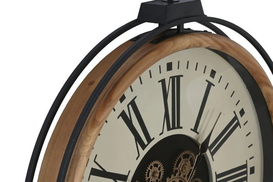 Relógio de Parede Grande Estilo Industrial em Ferro e Madeira