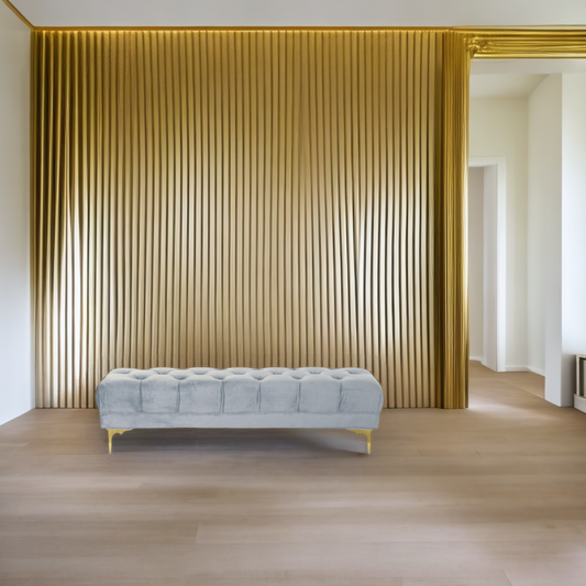 Em promoçãoBanco Capitoné azul e dourado 140cm