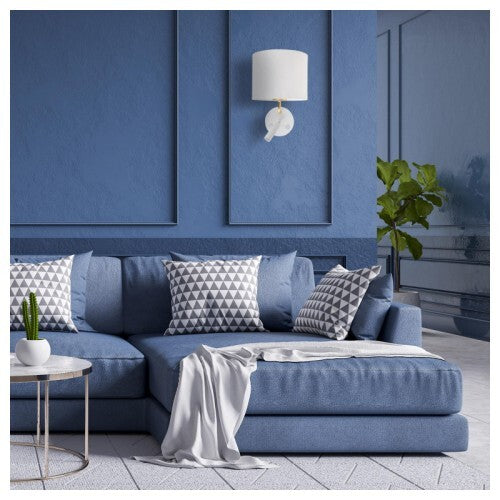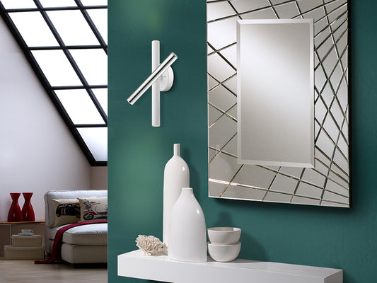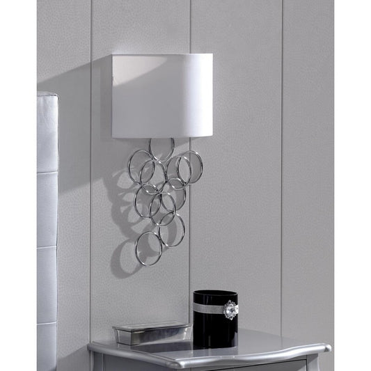 Wandleuchte mit Chromrand und weißem Lampenschirm
