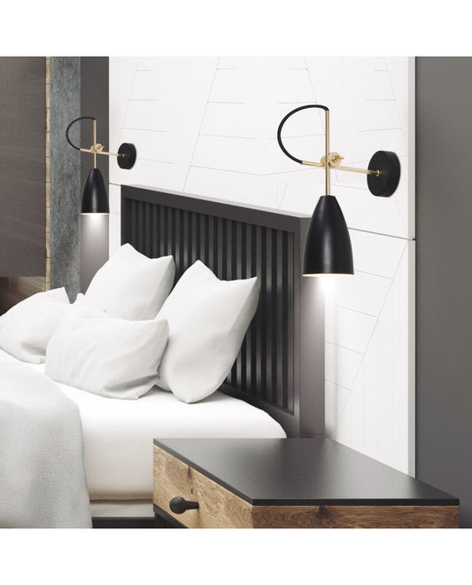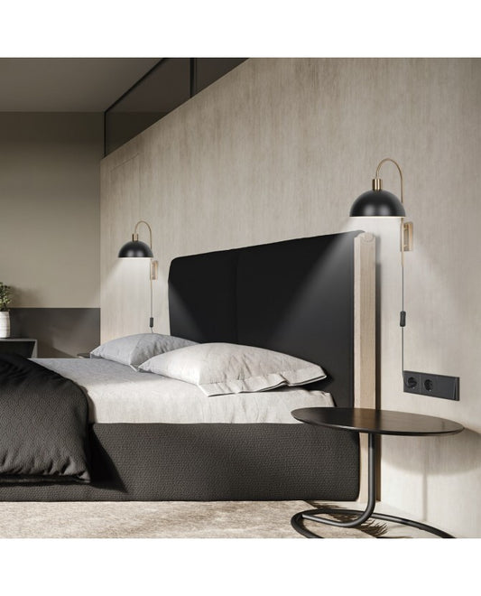 Schwarze und goldene Wandlampe Guillen mit Fassung