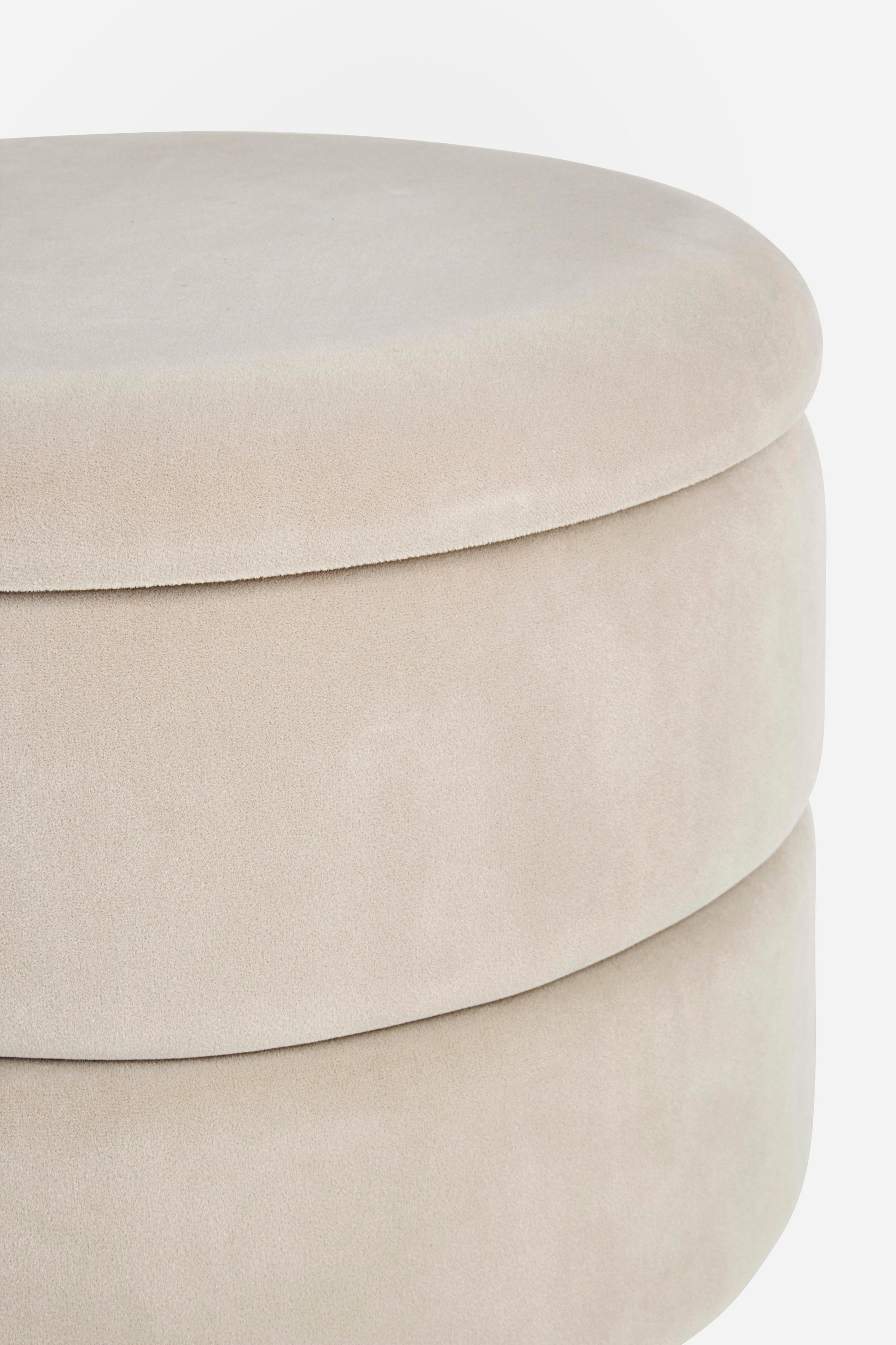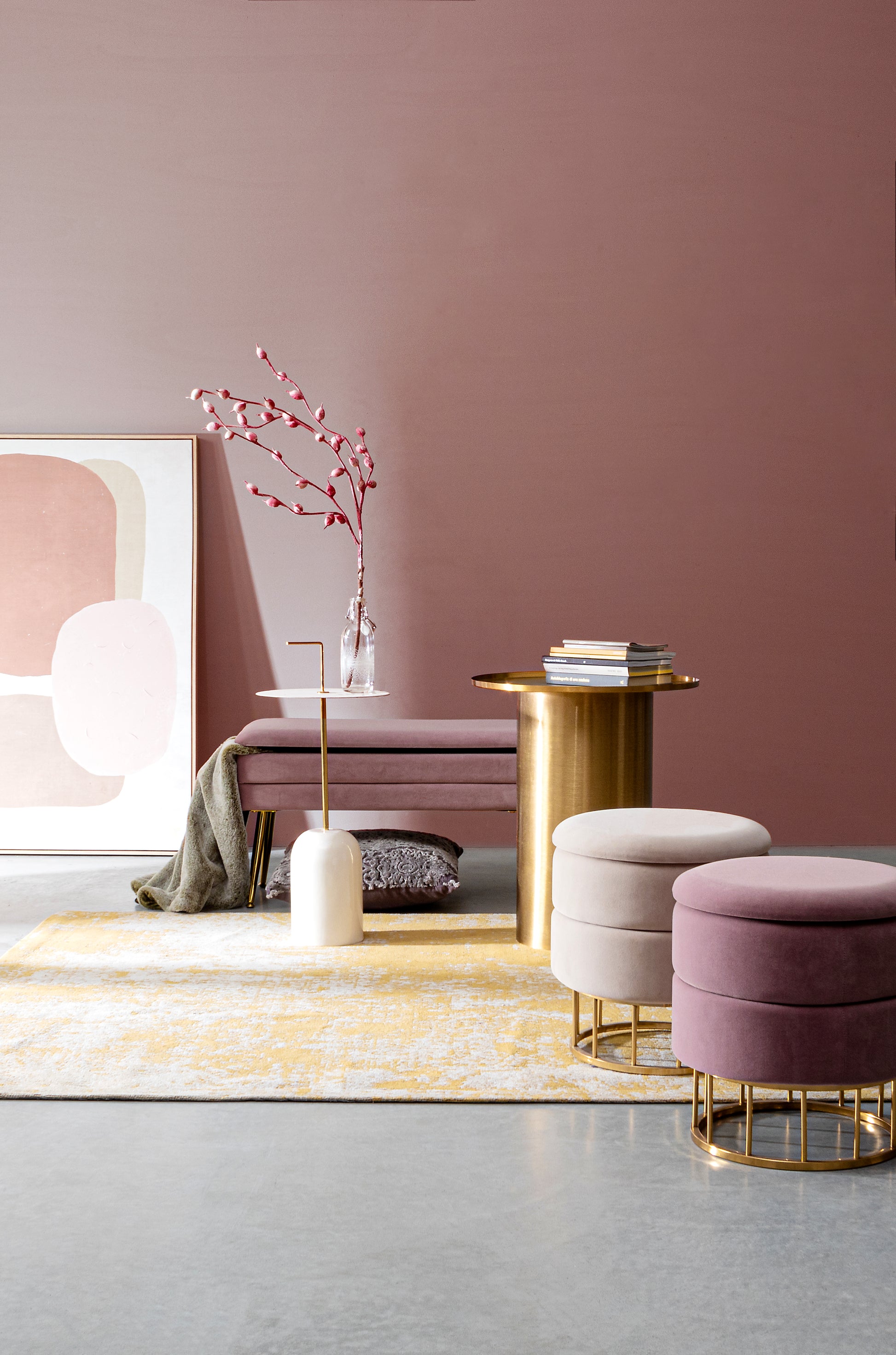 O Banco Pavlina com arrumação é exatamente isso. Revestido em veludo suave e com uma base metálica dourada, este banco é uma peça que se destaca pela sofisticação e versatilidade. Funciona como assento extra, ponto de apoio e ainda oferece espaço escondido para guardar o que quiser — mantas, revistas, acessórios ou até brinquedos.