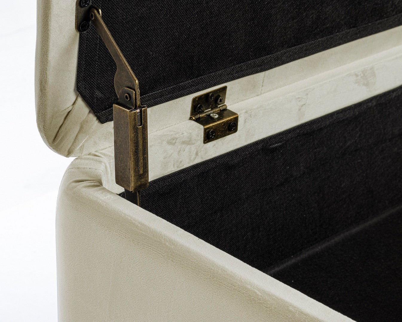 Um design que combina um tecido de veludo macio com pernas de madeira e um toque de dourado no final para criar uma peça de mobiliário elegante e sofisticada. Uma arrumação prática e funcional que proporciona espaço de armazenamento extra em qualquer divisão.