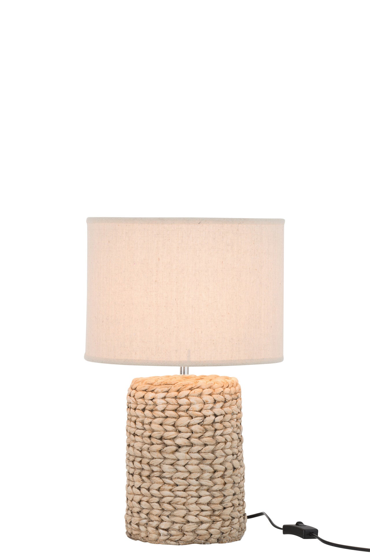 Tischlampe aus Keramik in Seiloptik mit beigem Schirm