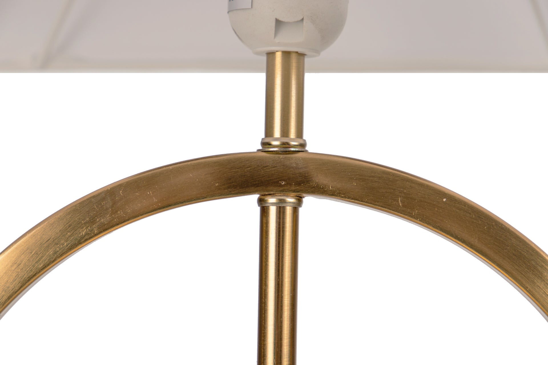 Com 55 cm de altura e dimensões equilibradas (34 cm de comprimento por 20 cm de largura), este candeeiro tem presença sem ocupar demasiado espaço. Feito em metal dourado e tecido cuidadosamente escolhido.