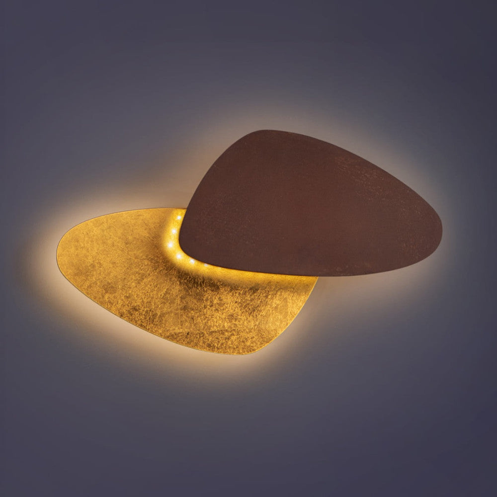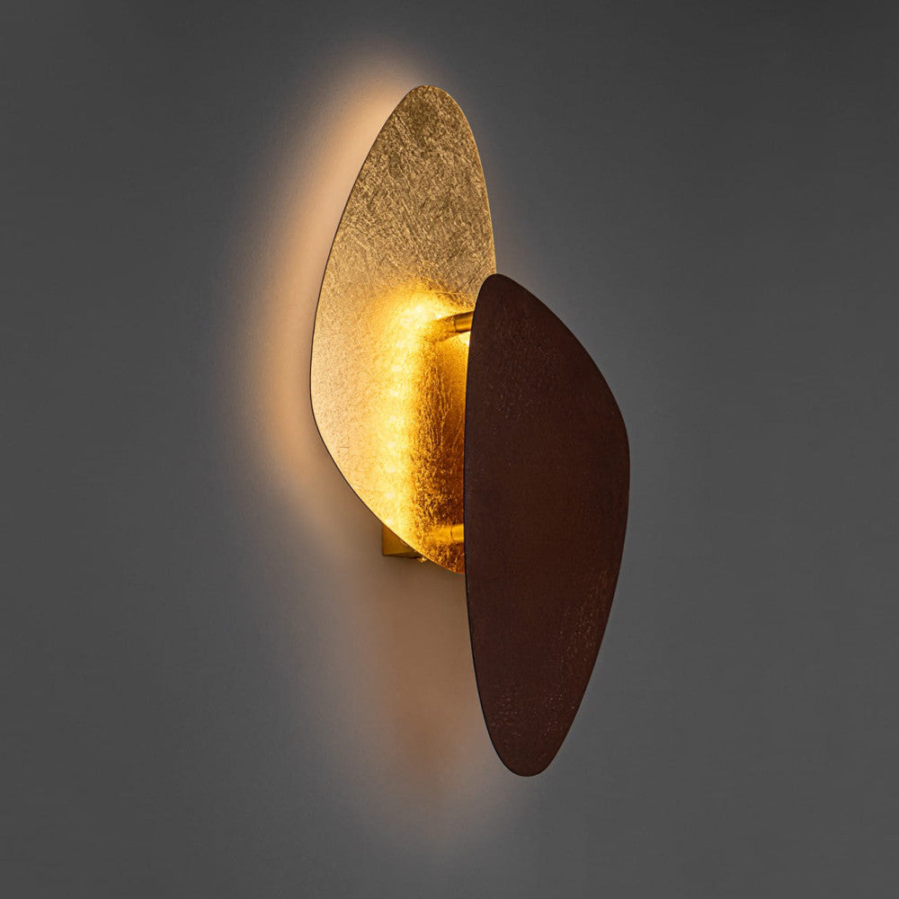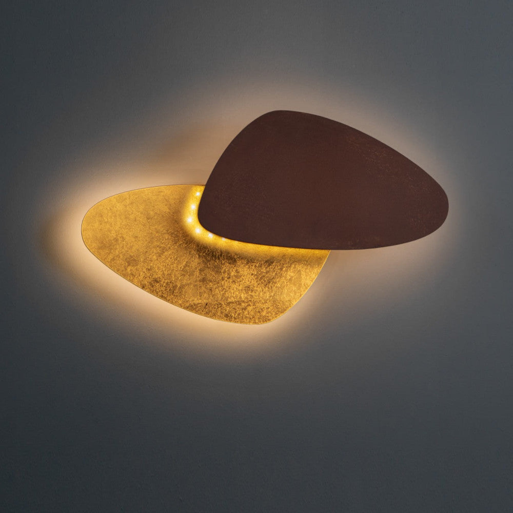 Applikation aus Metall mit Blattgold-Finish und Stahl in brauner Oxidfarbe. 12W LED. 1576 lm. 3000 K.