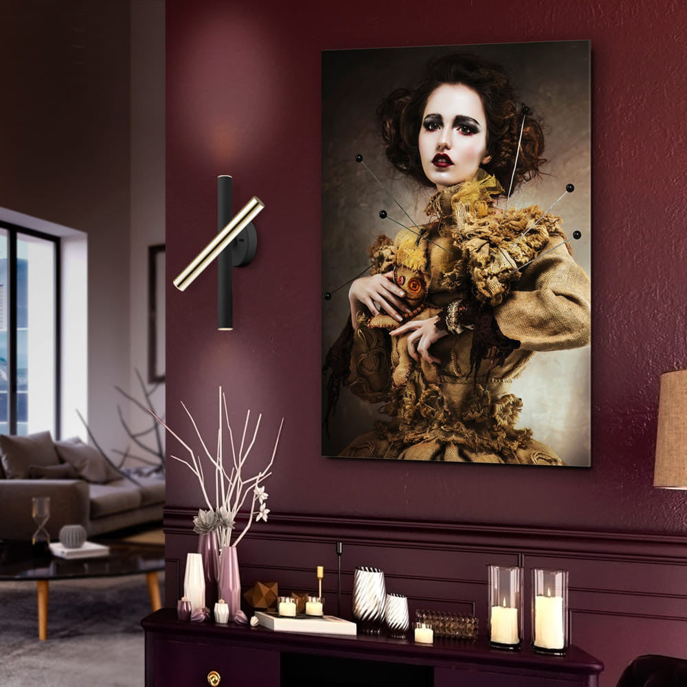 3-flammige LED-Wandleuchte mit schwenkbarem Arm. Aus Metall mit glänzendem Gold-Finish und mattem Schwarz. Diffusor aus opalem Acryl. 15 W, 1350 lm, 3.000 K. DIMMBAR.