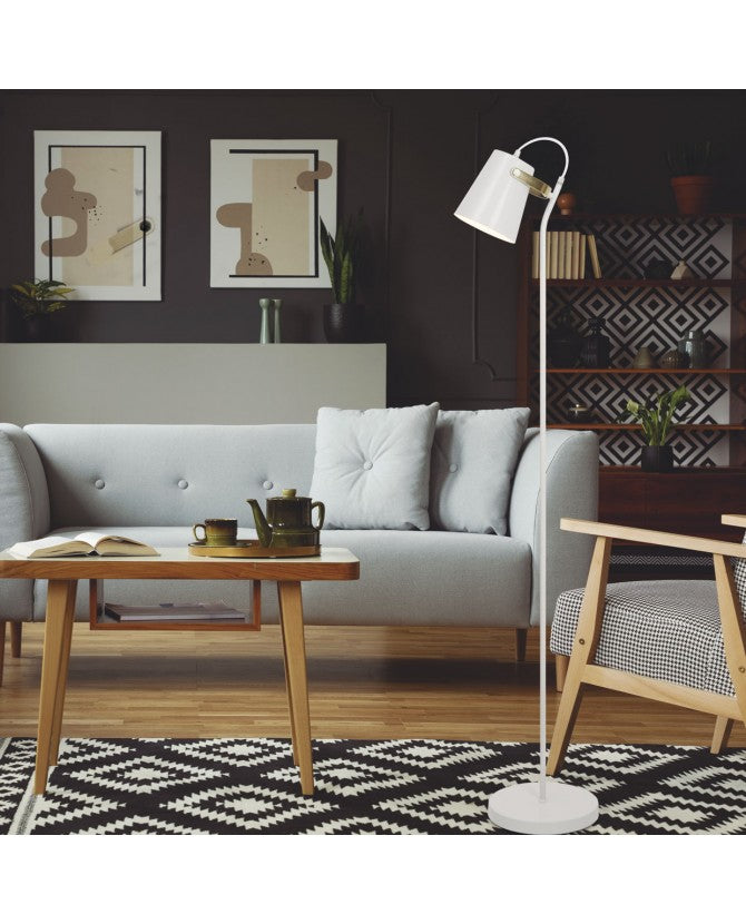 Stehlampe Lupen aus mattweißem Metall. Ideal für direktes Licht als Stütze für Sofa oder Sessel.