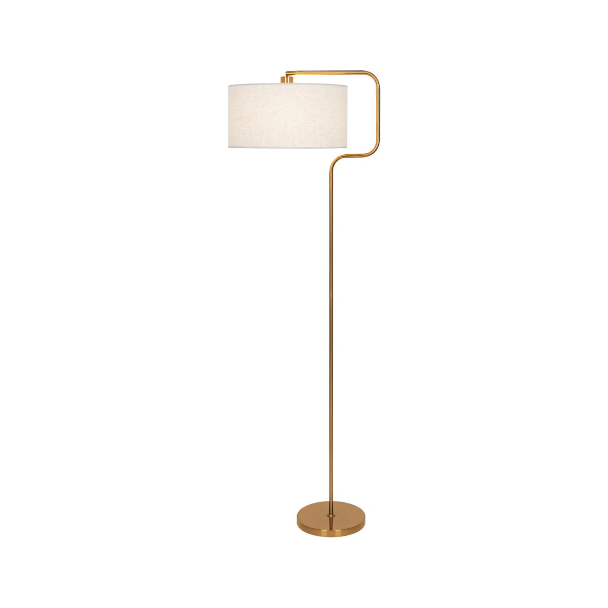 Candeeiro de pé estilo moderno Olfo. Destaca-se o seu design com estrutura metálica ajustável na regulação do abajur, perfeito para salas. Este candeeiro de pé, feito com materiais de alta qualidade, traz um toque de elegância a qualquer espaço. Produzidos em metal cor de latão e abajur linho natural que cria uma atmosfera quente e aconchegante. Com uma potência máxima de 60W (lâmpada E-27 não incluída), compatível com lâmpadas LED, o Candeeiro para sala de estar OLFO é a escolha perfeita para iluminar a sua sala de estar com estilo.