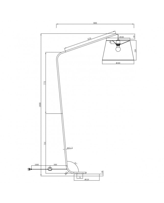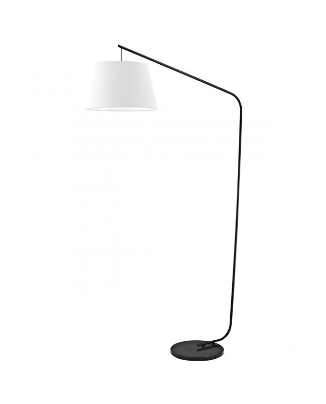 Stehleuchte mit verlängertem Arm aus der TALBOT-Kollektion. Aus Metall mit schwarzem Finish und Stoffschirm in weißem oder schwarzem Finish.