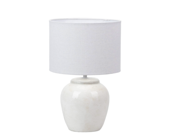 Candeeiro mesa Mykonos bege claro c/abajur branco. Para criar ambientes suaves e acolhedores na sua sala de estar, quarto ou entrada.