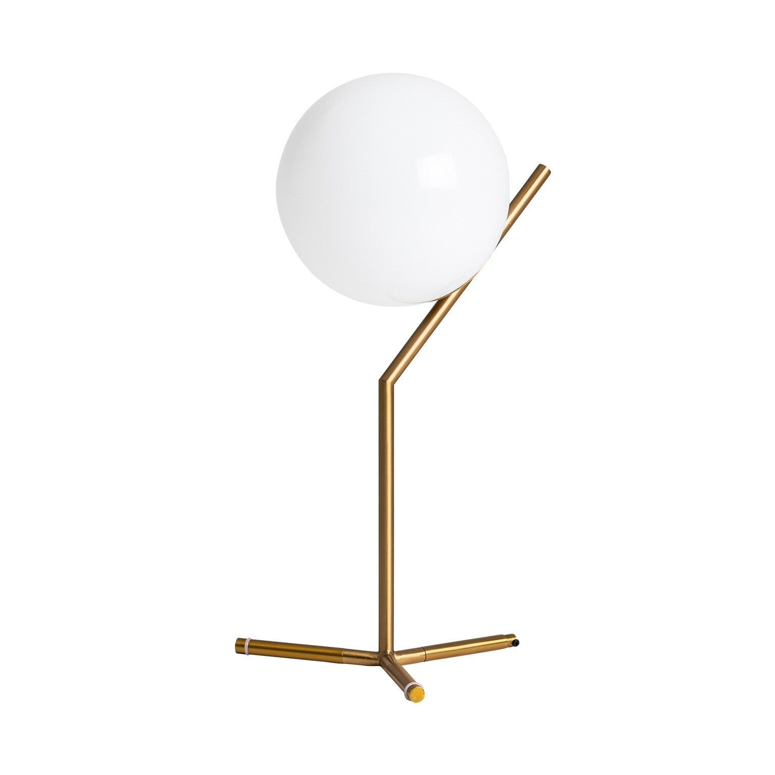 Candeeiro de mesa com bola de vidro opaca, em cor dourado, estilo Art Deco.
