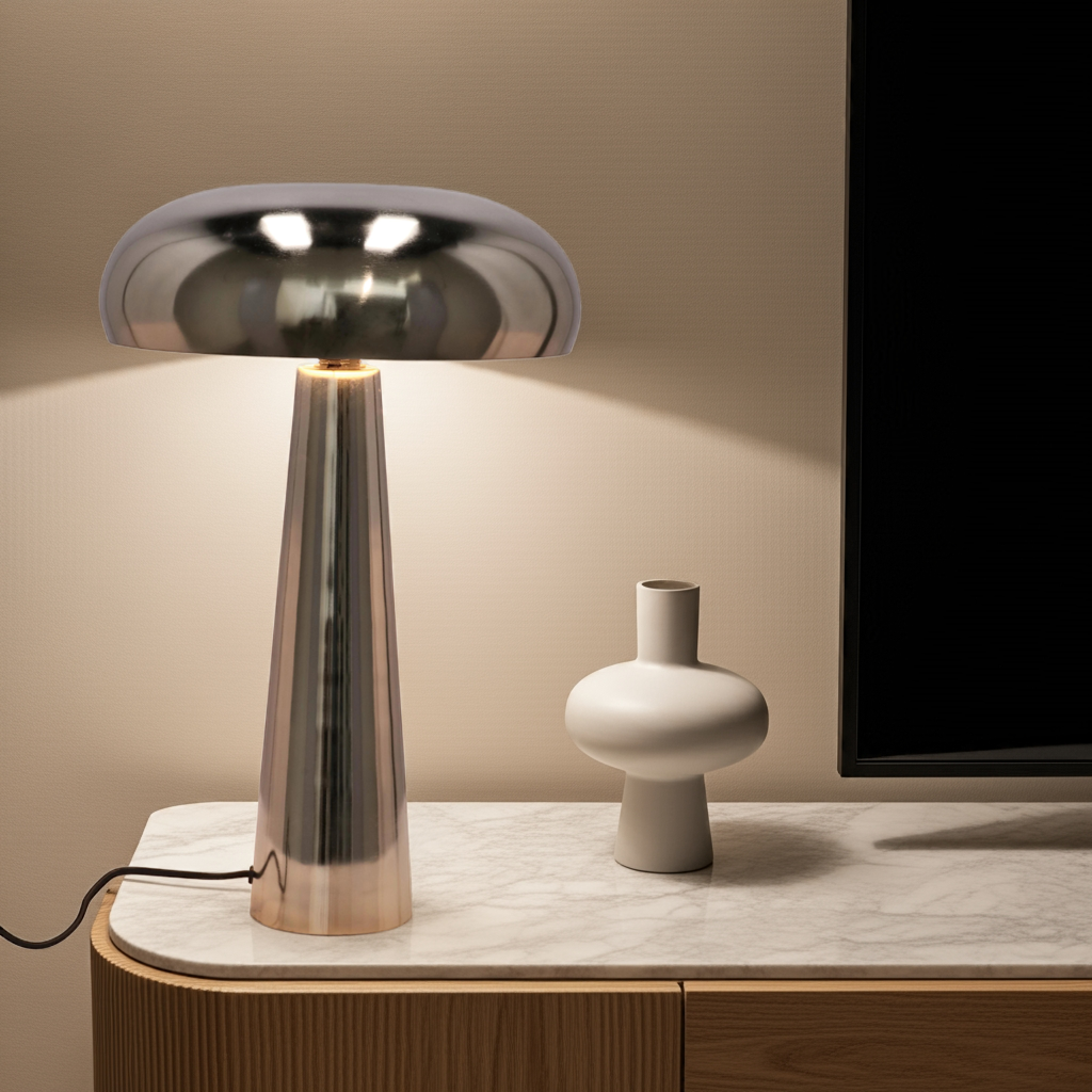 O candeeiro de mesa Huvila prateado chega para resolver isso — transforma qualquer ambiente com um brilho elegante e sutil que te deixa confortável, sem esforço. A sua base metálica prateada e o abajur perfeitamente curvado criam um encanto visual que combina com sofás, estantes ou mesas de cabeceira.