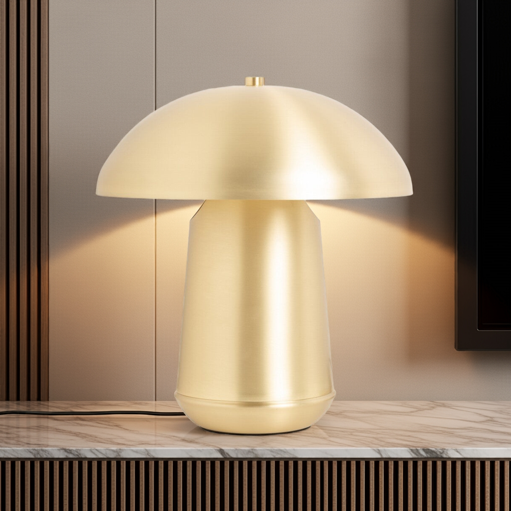 Candeeiro de mesa Lena, cor dourada, estilo art déco. Feito totalmente em metal. Para 1 lâmpada E27, não incluída