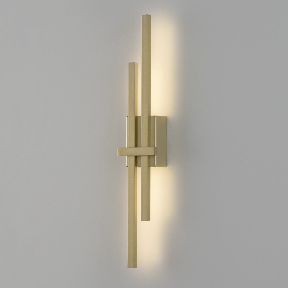 Coleção de luminárias de parede internas com luz indireta, em metal e acabamento texturizado, dourado e preto.