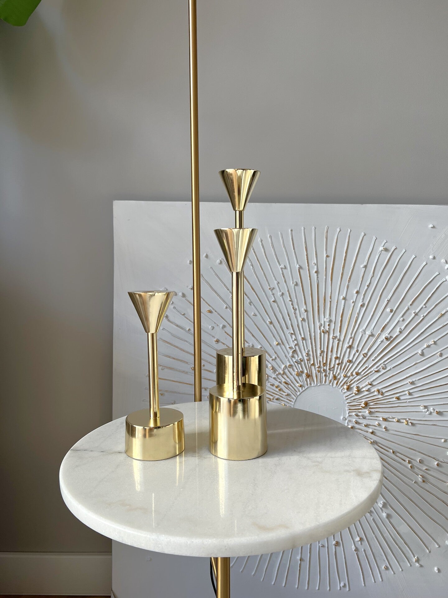 L: 7,5 centímetros x W: 7,5 cm x H: 28 cm Castiçal médio