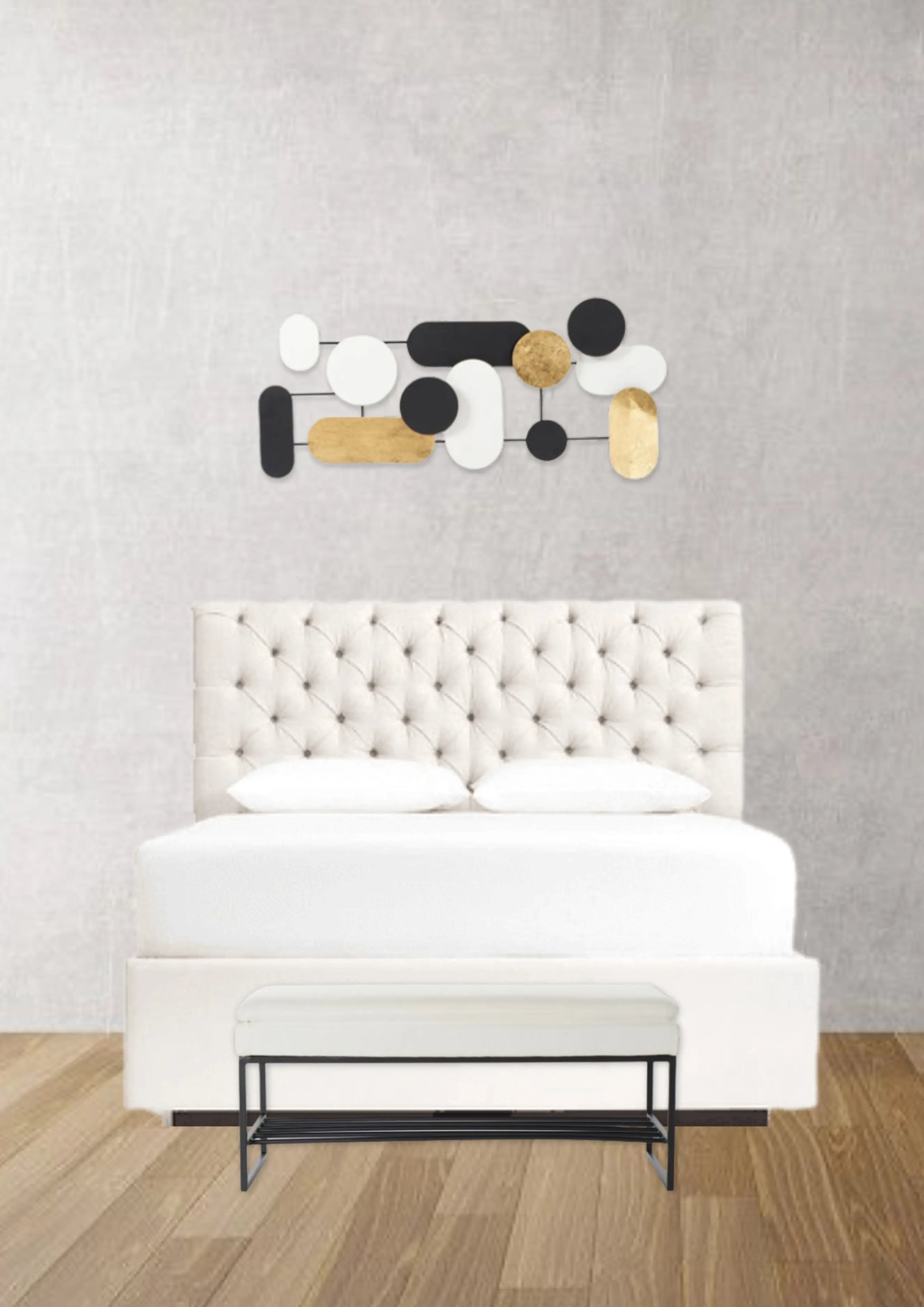 Wanddekoration Kreise und Ovale weiß schwarz und gold