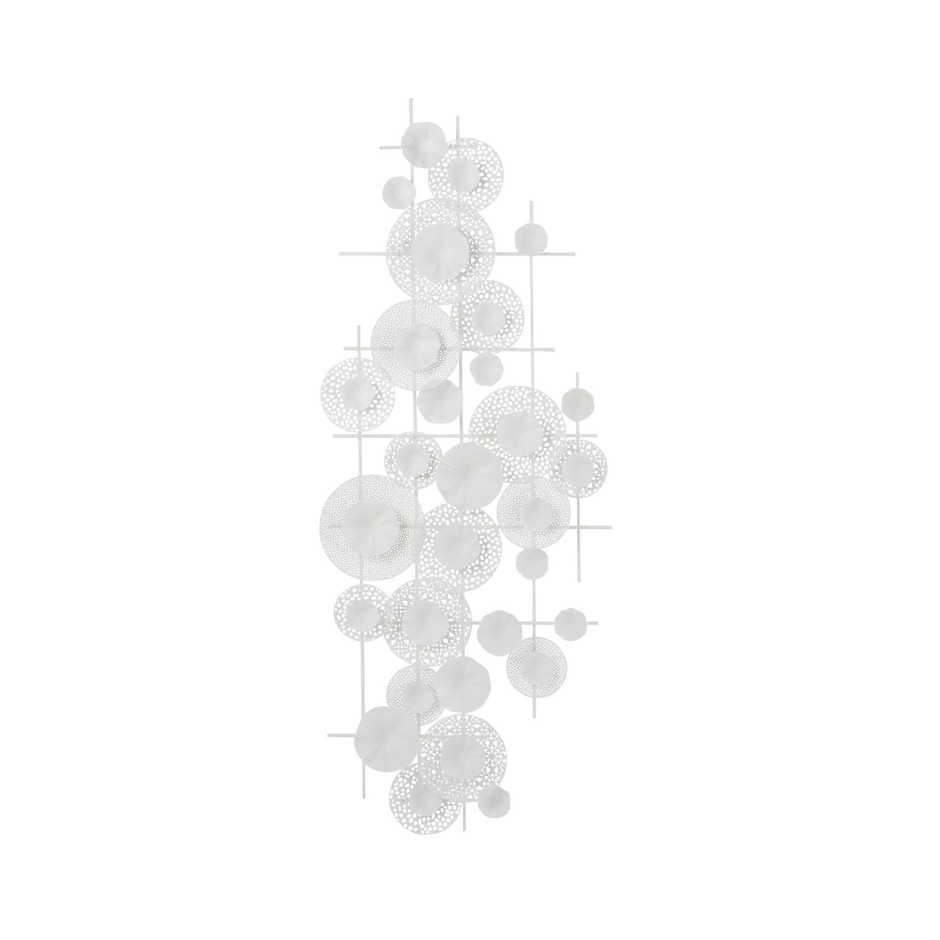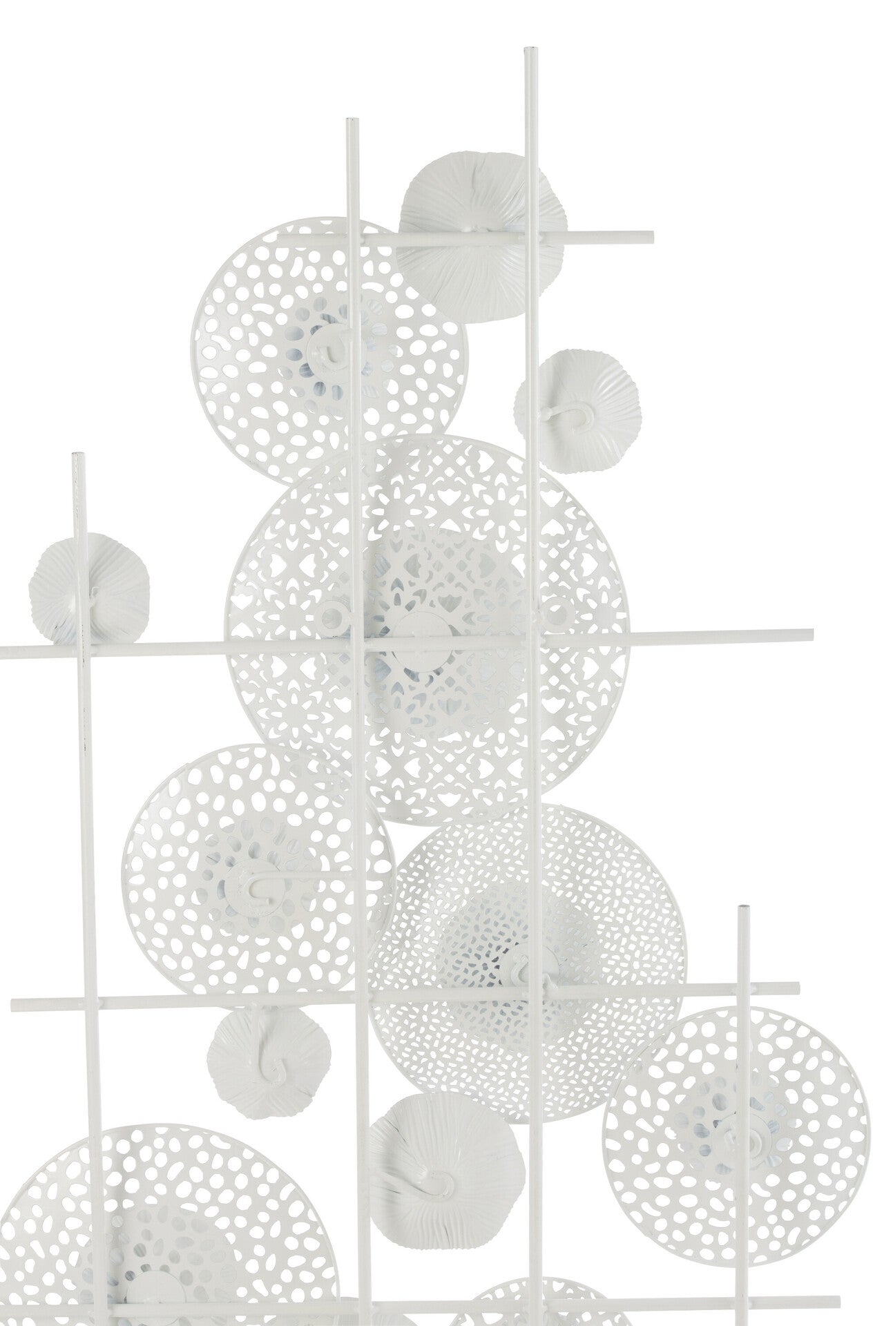 Wanddekoration aus Metall mit Blumenmotiv und weißem Finish. Schaffen Sie mit diesem Stück eine Struktur auf einer weißen Wand oder setzen Sie einen Kontrast auf einer farbigen Wand.