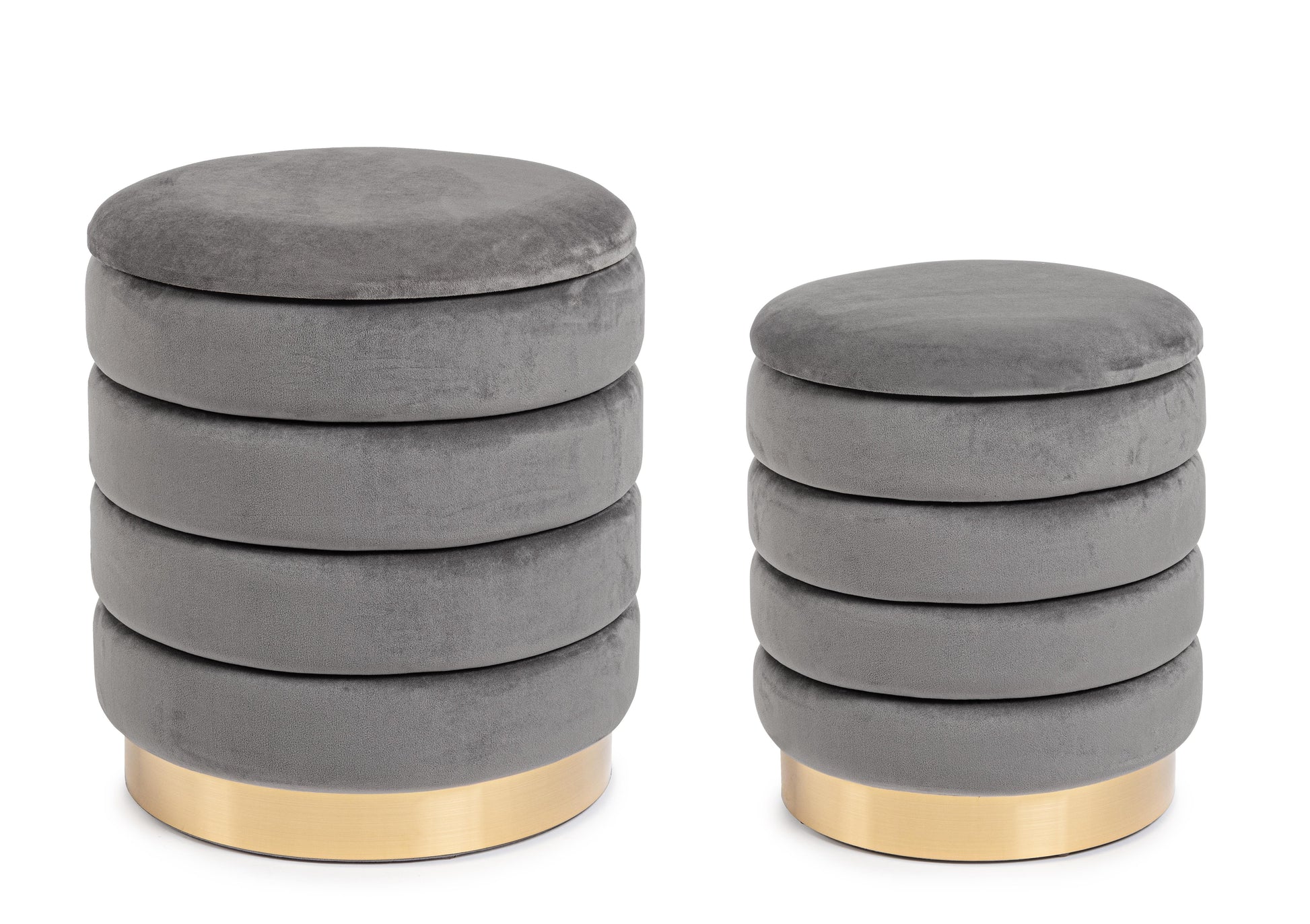 Conjunto de 2 Pufes Darina, estofado em veludo, com pé em metal dourado. Com arrumação, ideal para a entrada, quarto ou sala.