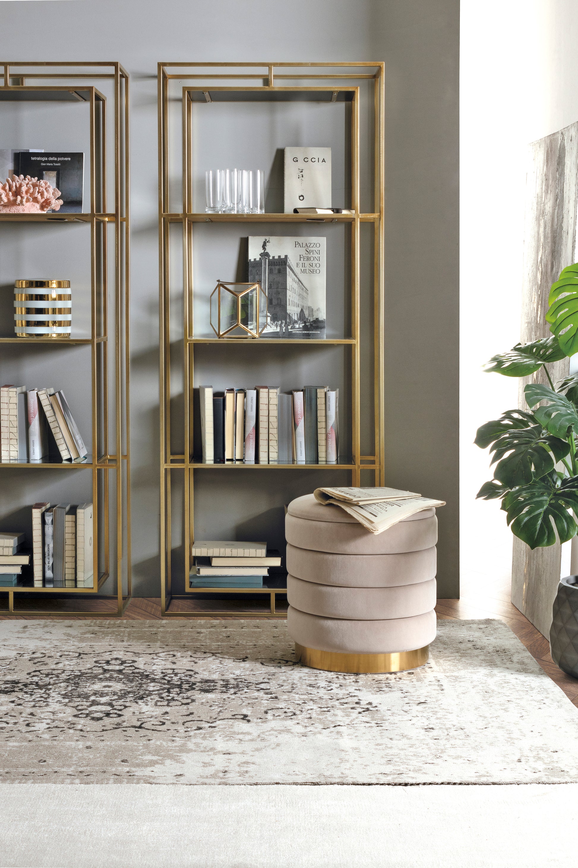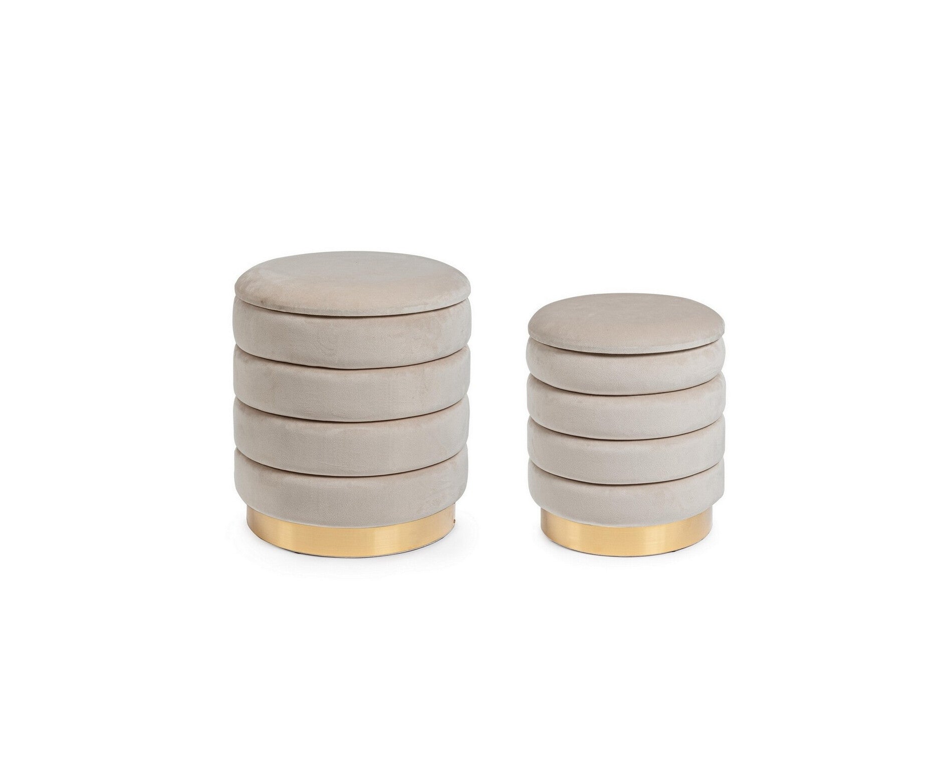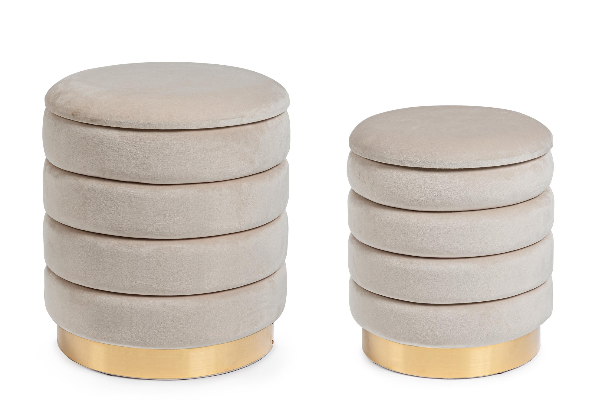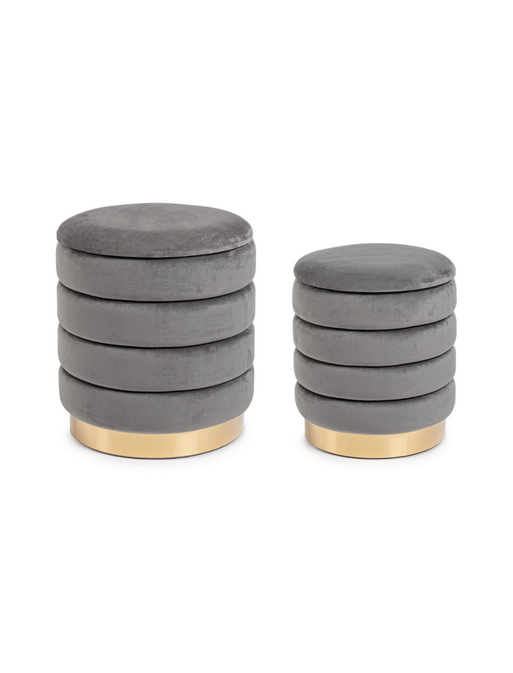Conjunto de 2 Pufes Darina, estofado em veludo, com pé em metal dourado. Com arrumação, ideal para a entrada, quarto ou sala.