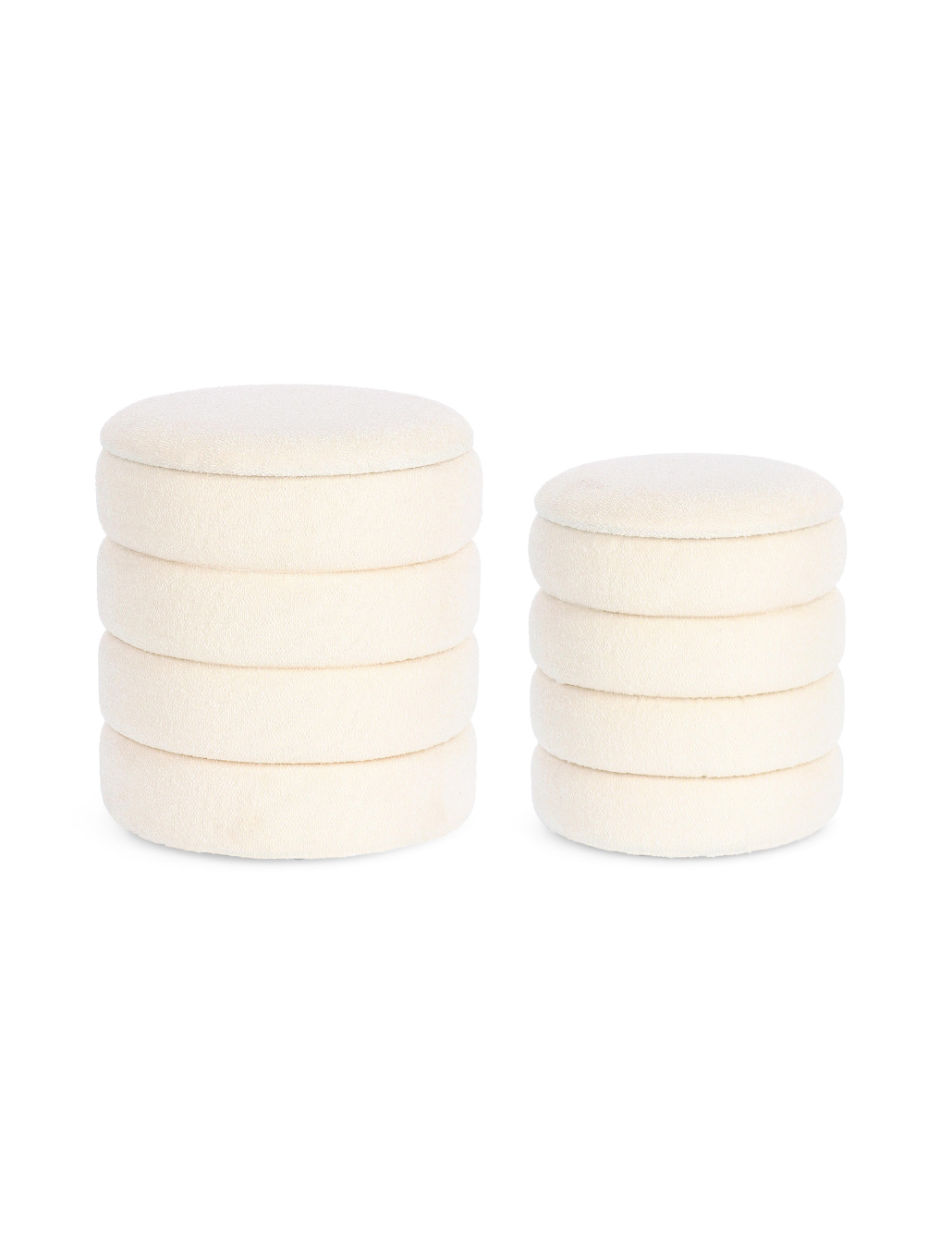 Com dimensões pensadas para se adaptar facilmente a vários ambientes – o pufe mais pequeno com 38 cm de altura e Ø 33 cm, e o maior com 44 cm de altura e Ø 40 cm – tornam-se versáteis no hall de entrada, sala ou quarto. A estrutura em MDF é robusta e a qualidade do tecido garante durabilidade, mesmo com uso diário. Para além disso, chegam montados e prontos a usar – sem complicações.