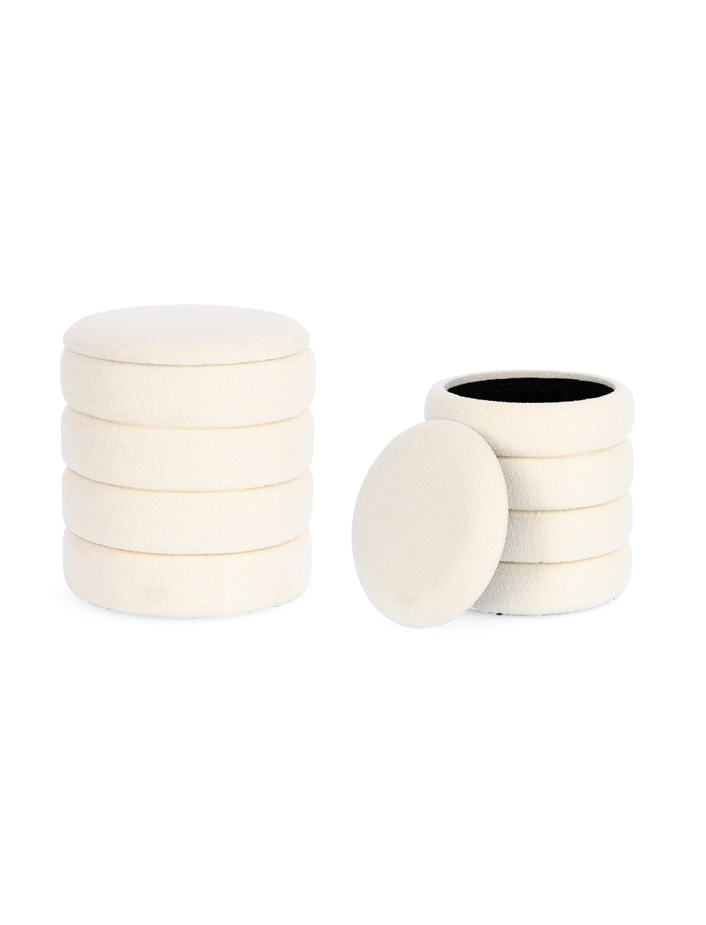 Os Pufes Katerina com arrumação branco, oferecem-lhe uma solução sofisticada e inteligente. Discretos por fora, espaçosos por dentro – são ideais para guardar mantas, revistas, brinquedos ou acessórios, mantendo o espaço sempre limpo e acolhedor. O estofado em poliéster de toque suave.