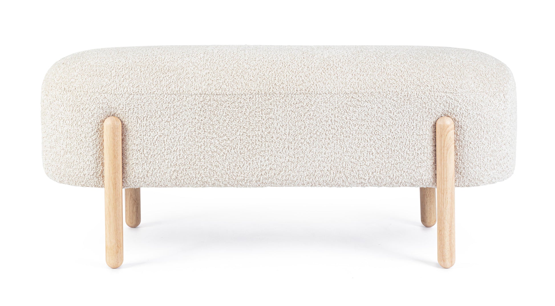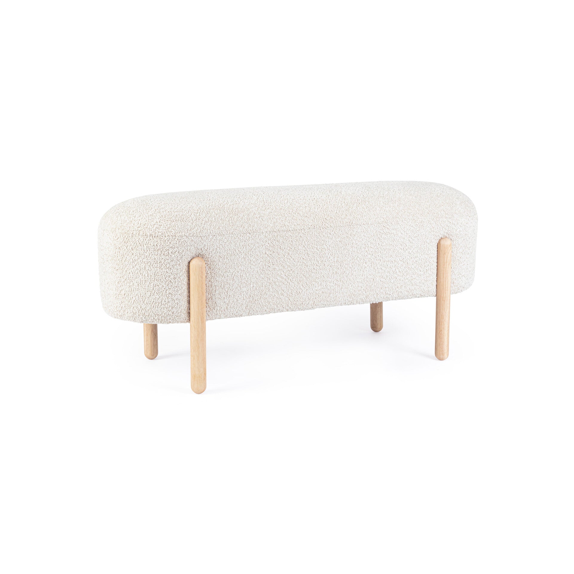 Um design que combina um tecido de bouclé com pernas madeira para criar uma peça de mobiliário elegante e sofisticada. Graças ao seu design simples e intemporal nunca sairá de moda e será fácil de combinar com qualquer estilo decorativo.