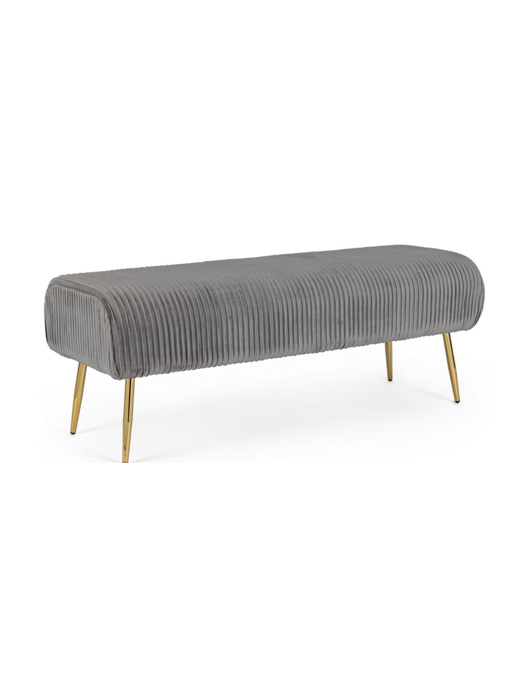 Banco longo Selena estofado em veludo e pés dourado 129cm.