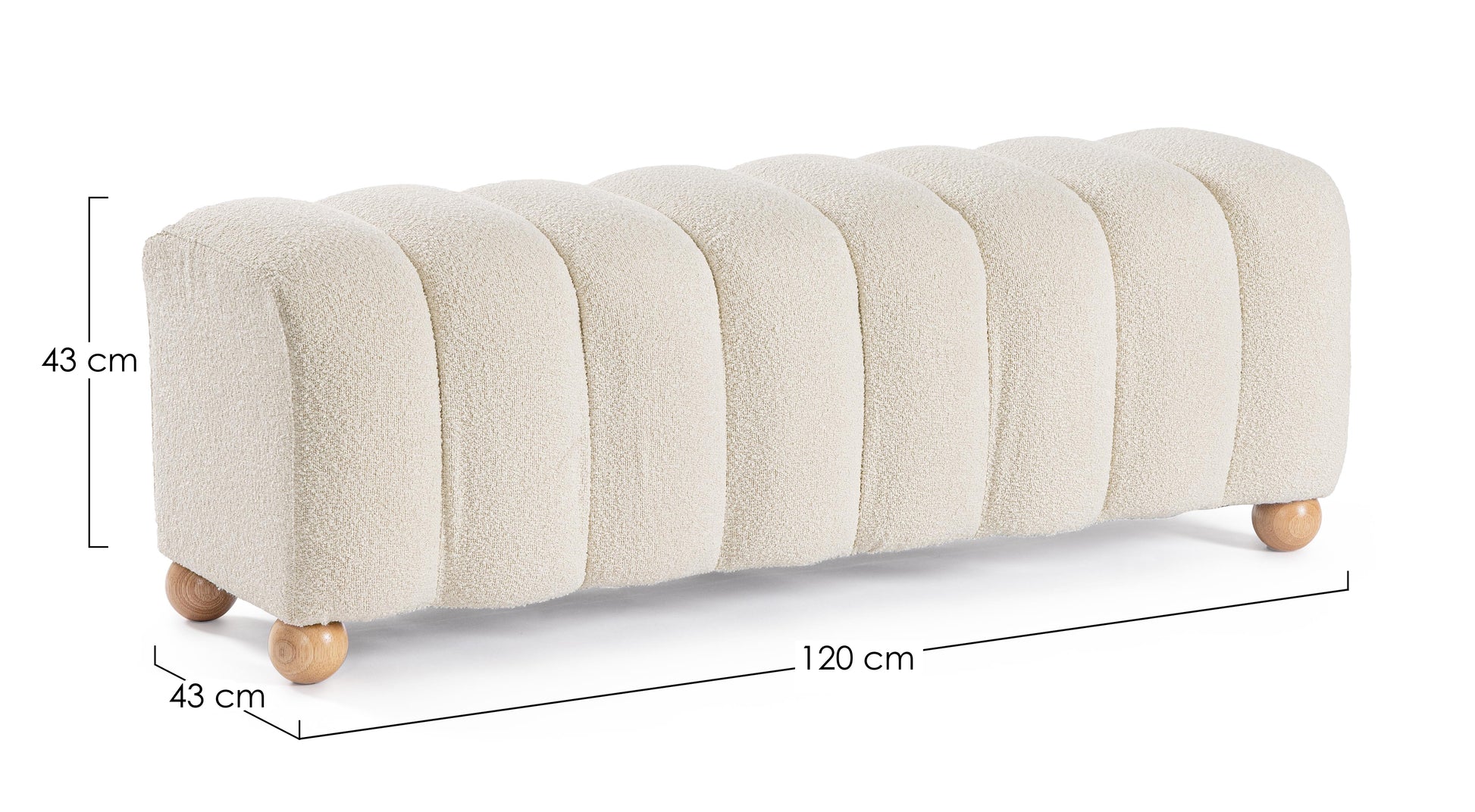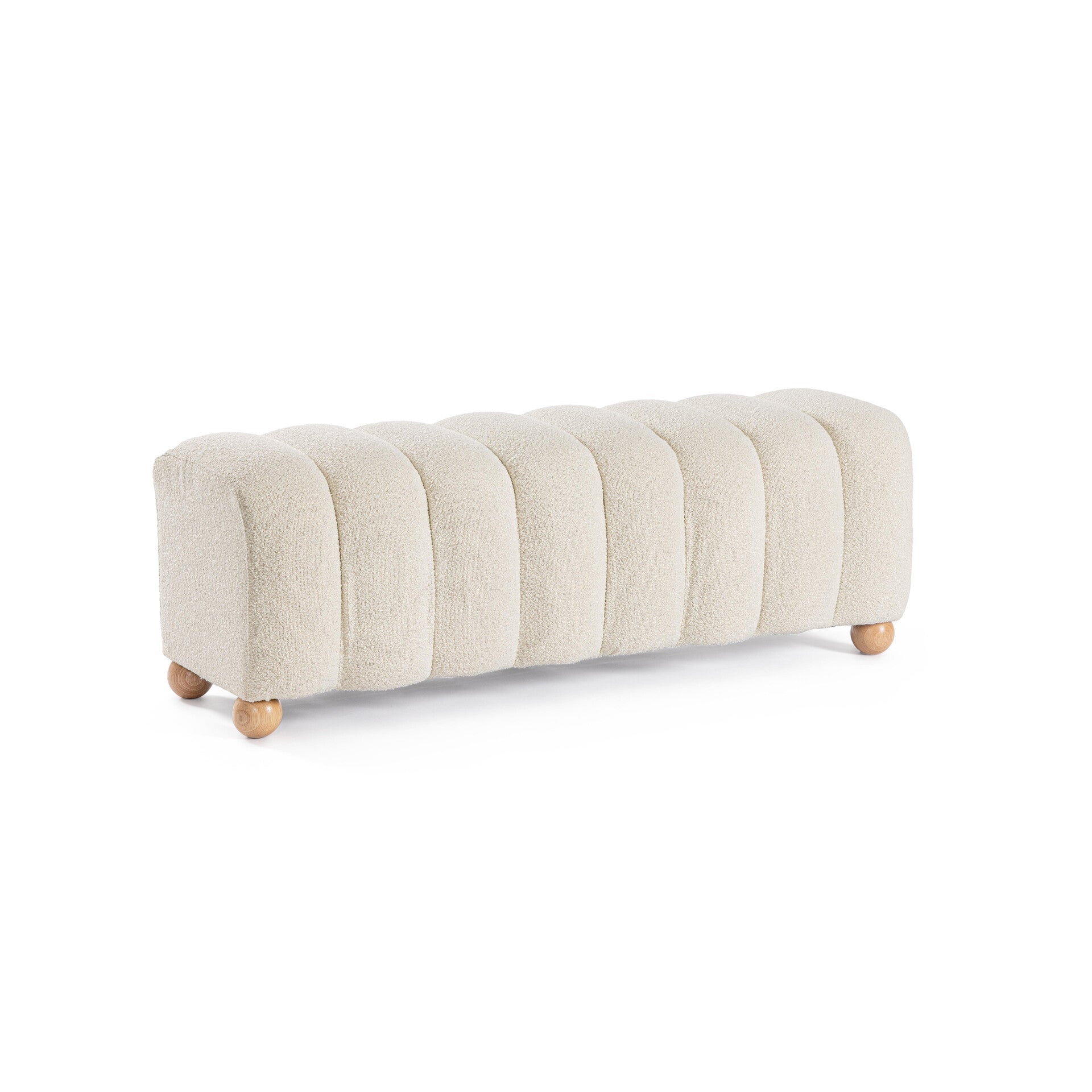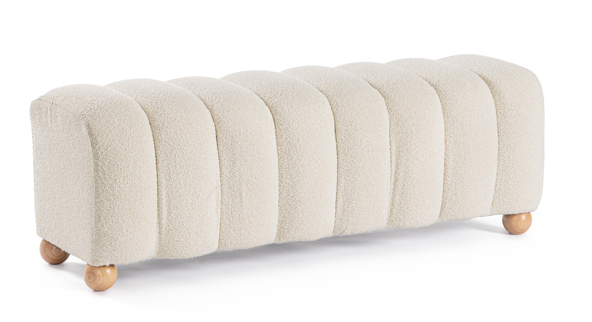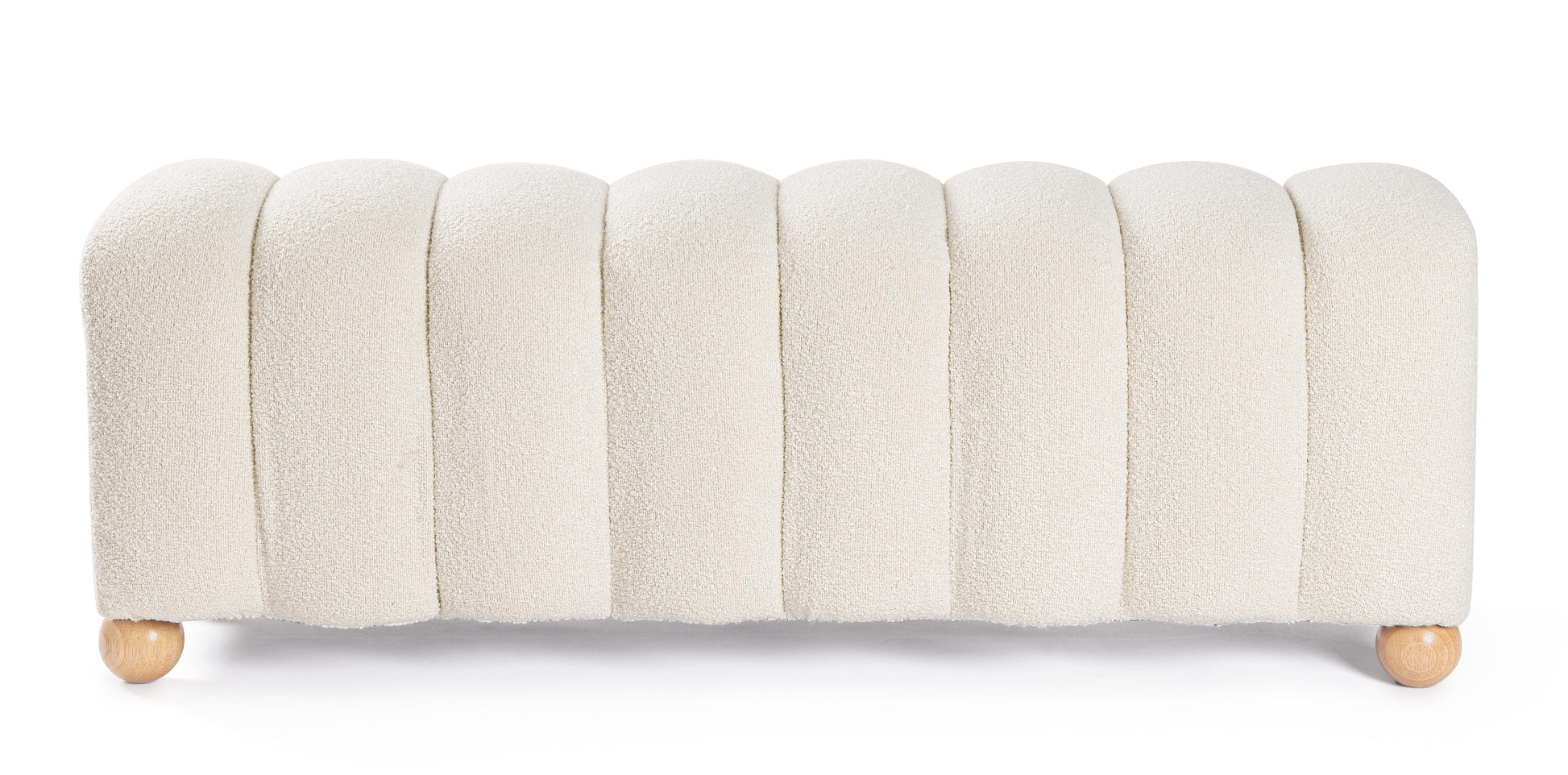 O Banco Zora estofado em bouclé é a solução perfeita. Com o seu design simples e elegante, funciona tanto como banqueta aos pés da cama, assento auxiliar no quarto ou no hall de entrada, como elemento decorativo numa sala moderna ou acolhedora. É uma peça multifuncional que se adapta às suas rotinas e aos seus espaços com facilidade.