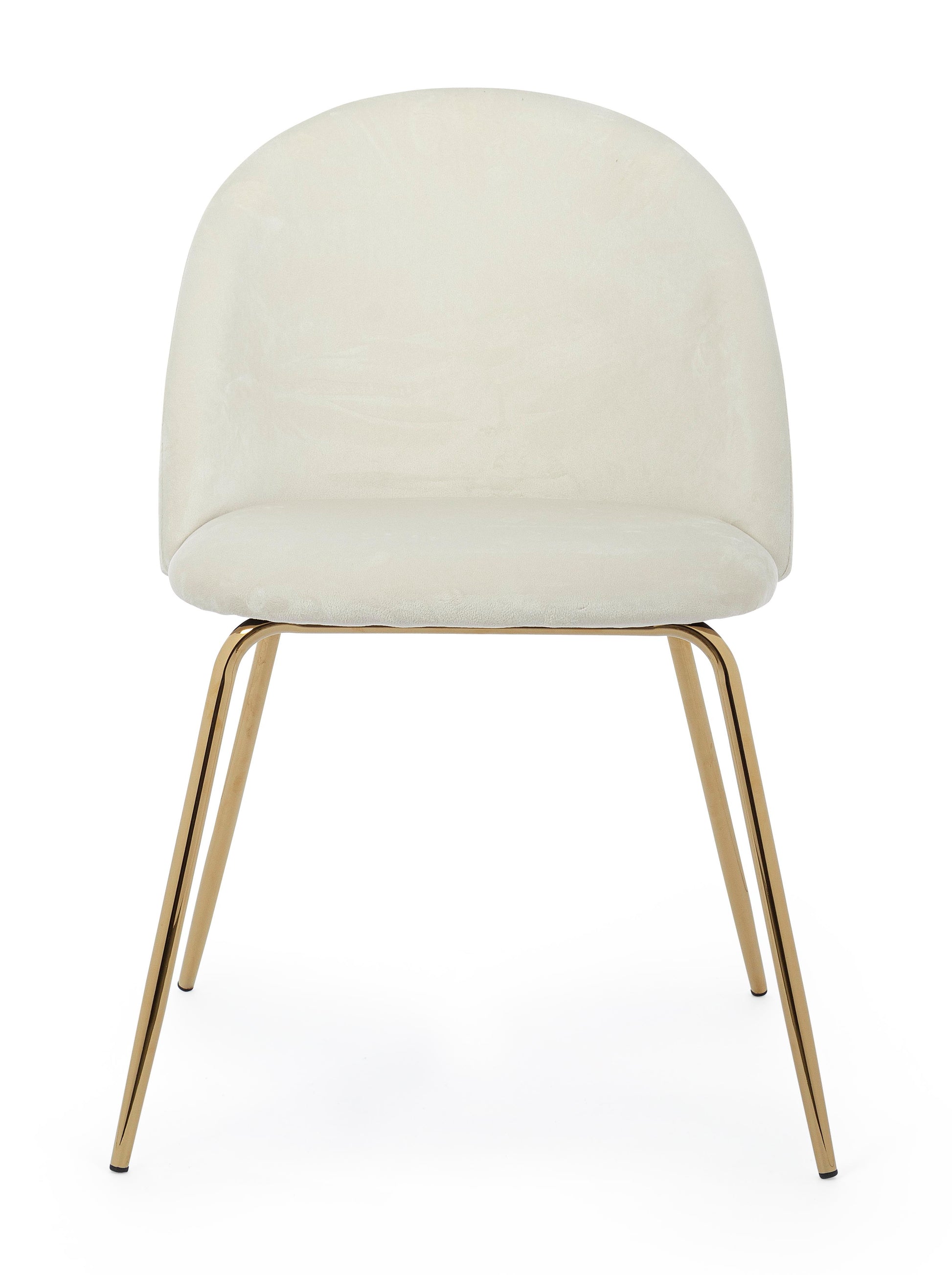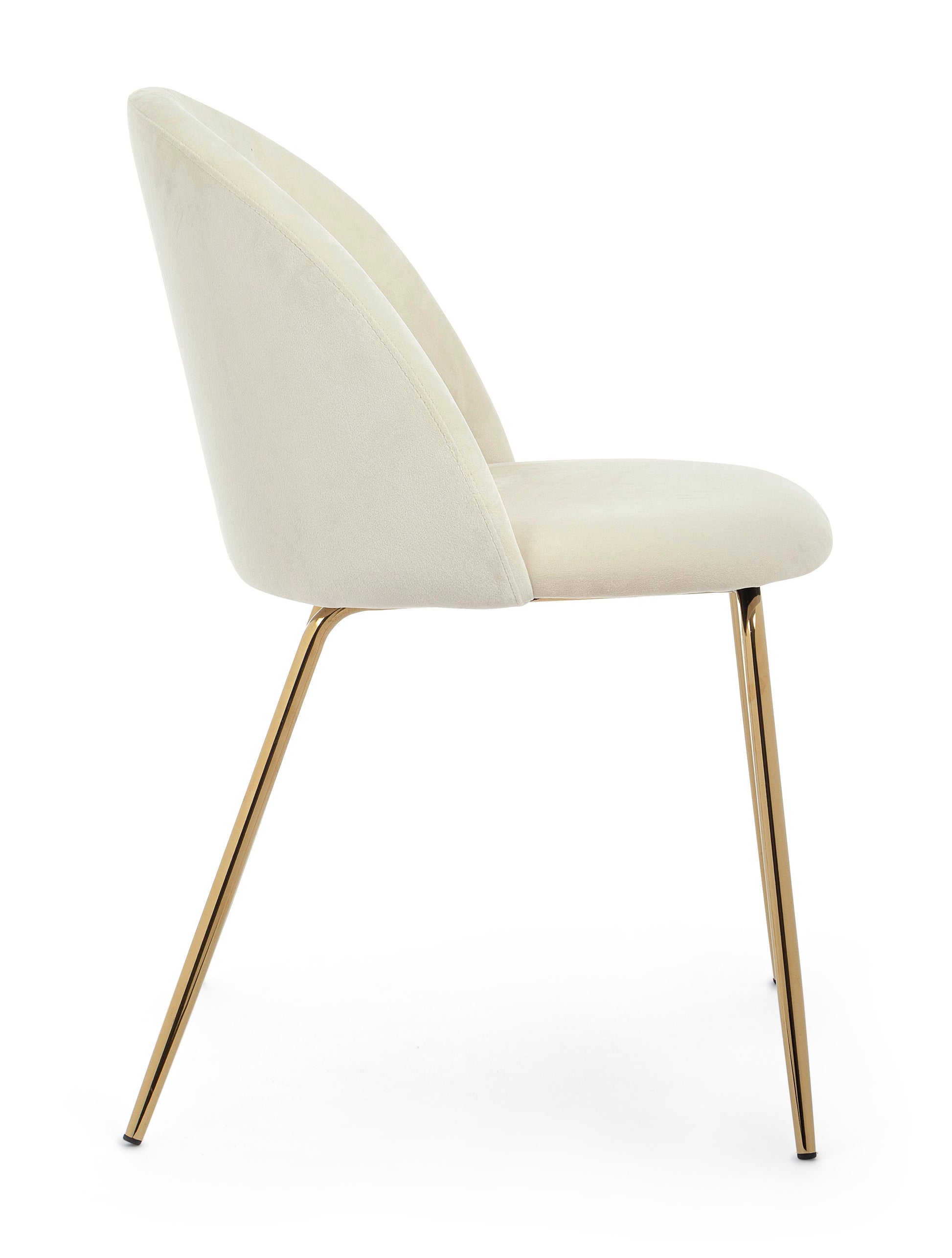 Cadeira Tanya, em veludo branco. Pernas tubulares em metal dourado.
