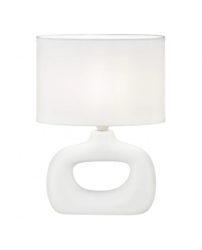 Candeeiro de mesa de pé em cerâmica branca, com abajur incluído. Ideal para conjugar na sua sala, entrada ou mesas de cabeceira. Para lâmpada E14.