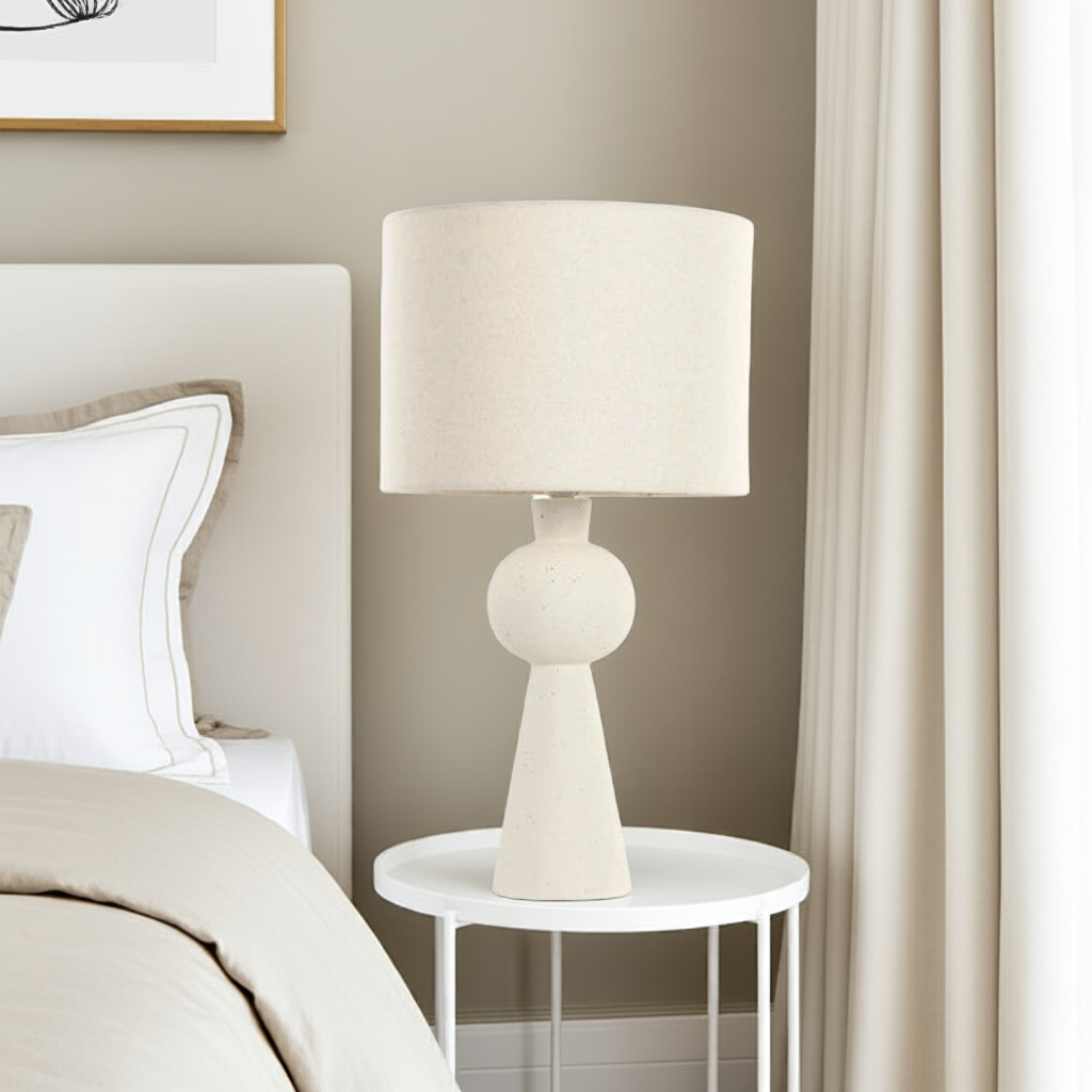 O candeeiro de mesa Stone é uma peça que alia naturalidade e sofisticação, perfeita para criar ambientes acolhedores e elegantes. Com a sua base em cerâmica texturada em tom bege/cor de pedra, apresenta uma forma orgânica que transmite leveza e modernidade. O conjunto é finalizado por um abajur têxtil em tom cru, que difunde a luz de forma suave e harmoniosa.