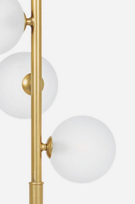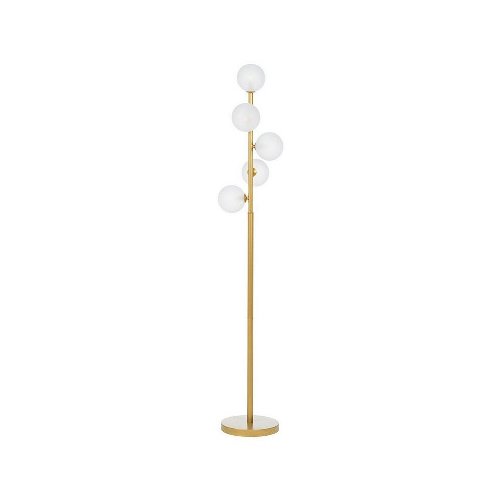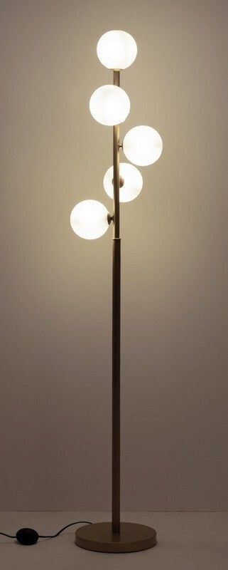 O Candeeiro de Pé Verona, com 5 esferas de vidro e estrutura dourada, uma peça de iluminação elegante e sofisticada que certamente se tornará destaque na sua decoração. Com um design contemporâneo, este candeeiro combina o brilho do dourado com a beleza fosca das esferas de vidro, criando uma atmosfera encantadora em qualquer ambiente.