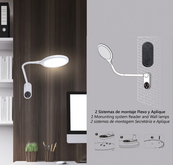 Com 9W de potência e 530 lúmenes, garante uma luz clara e confortável, perfeita tanto para trabalhar no escritório como para ler na mesa de cabeceira. Além disso, dispõe de três temperaturas de cor (3000K, 3800K e 5700K), permitindo-lhe ajustar a iluminação conforme a sua necessidade: mais quente e acolhedora para relaxar, neutra para atividades diárias ou fria para máxima concentração.