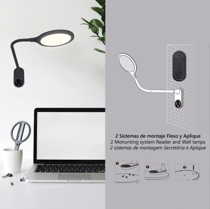 Graças ao seu design versátil e aos dois sistemas de montagem (candeeiro de secretária ou aplique de parede), adapta-se facilmente a diferentes ambientes e estilos de decoração. Fabricado com materiais de qualidade, é um artigo resistente e pensado para durar.
