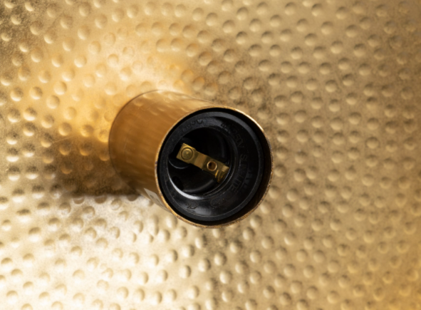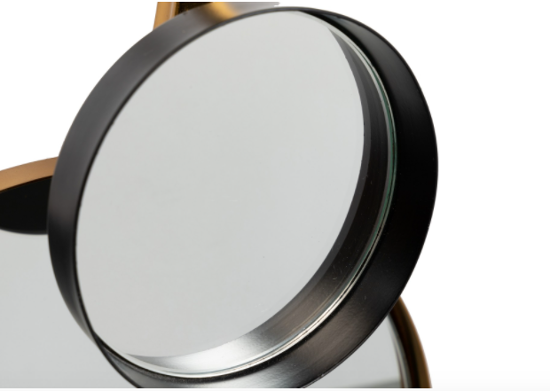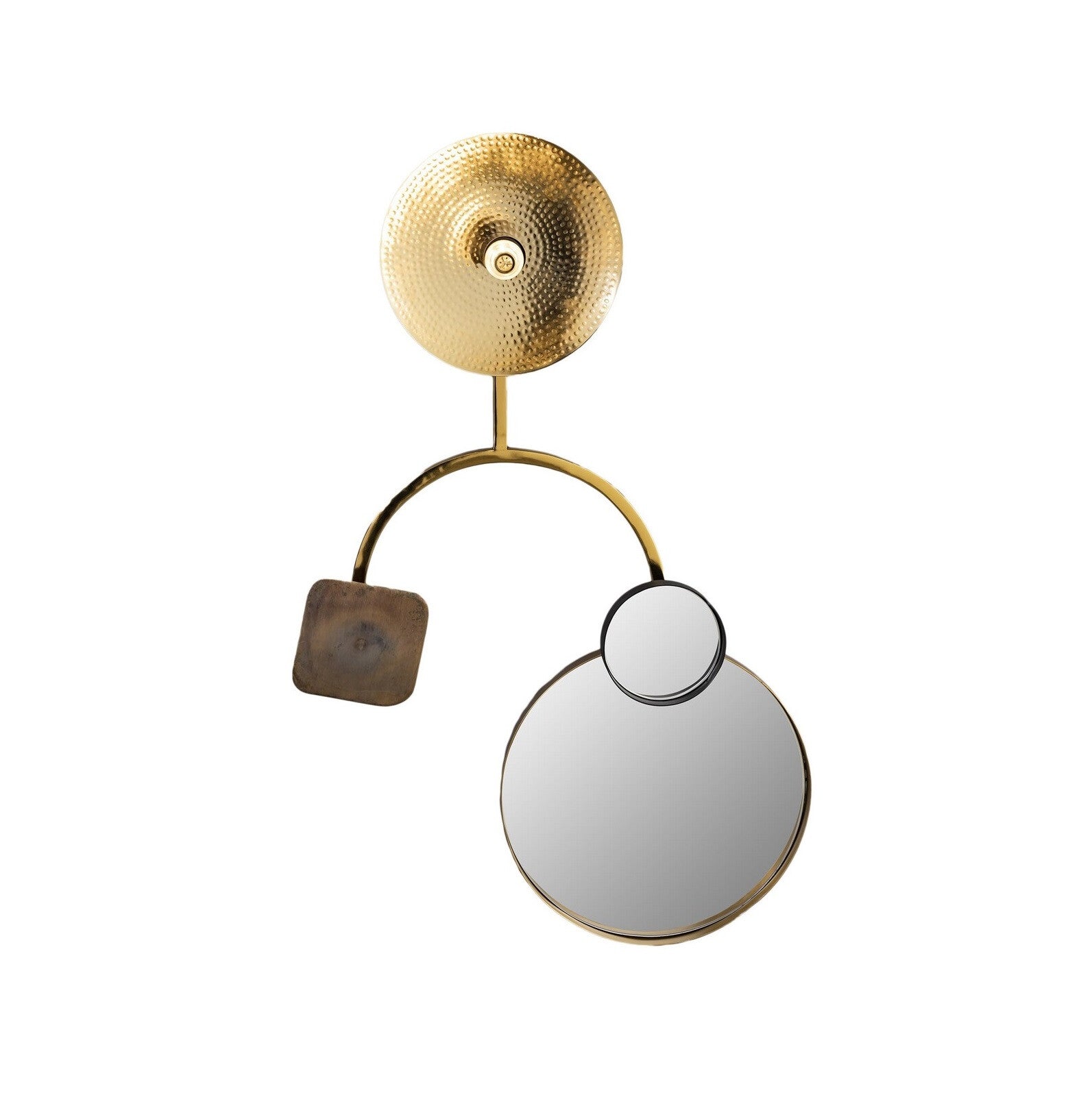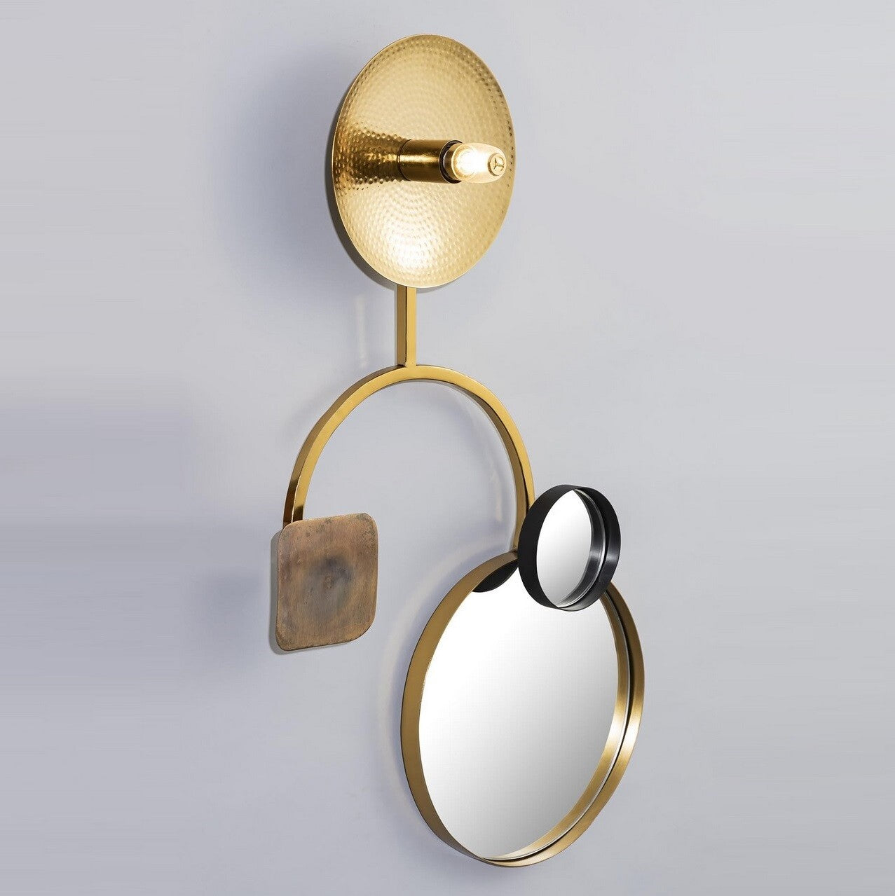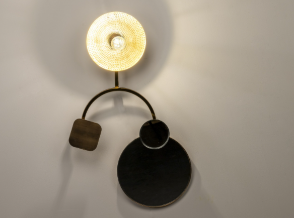 Candeeiro parede Oshawa, sofisticado com um design moderno e inspiração Art Deco feito em latão com formas geométricas em ouro, ouro envelhecido e preto.
