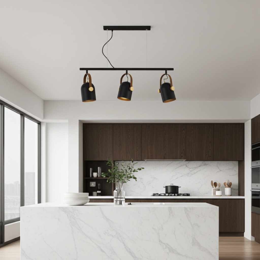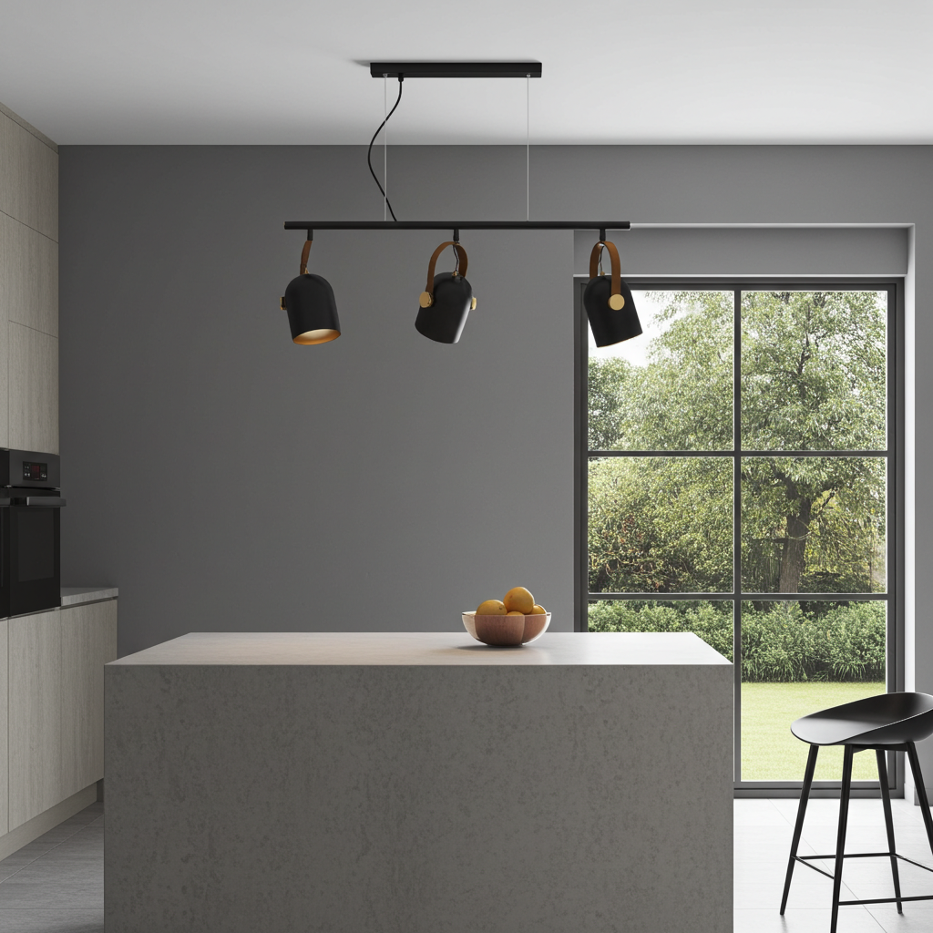 O Candeeiro Adame Suspenso de 3 Lâmpadas é uma peça elegante e funcional, perfeita para salas de estar, cozinhas ou áreas de refeições que procuram um toque de sofisticação. Realizado em metal com acabamento preto mate e dourado, com detalhes em latão polido e pega forrada em polipele castanha, apresenta focos giratórios que permitem direcionar a luz conforme a necessidade. Inclui 3 lâmpadas E14 LED de 7W, reguláveis para criar a iluminação ideal para qualquer ambiente.