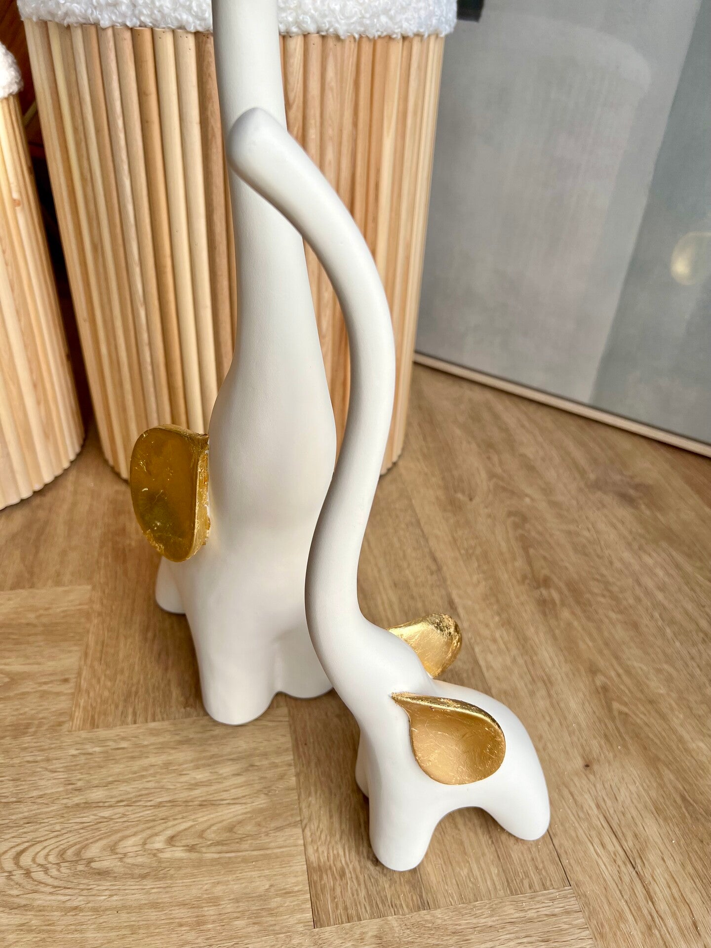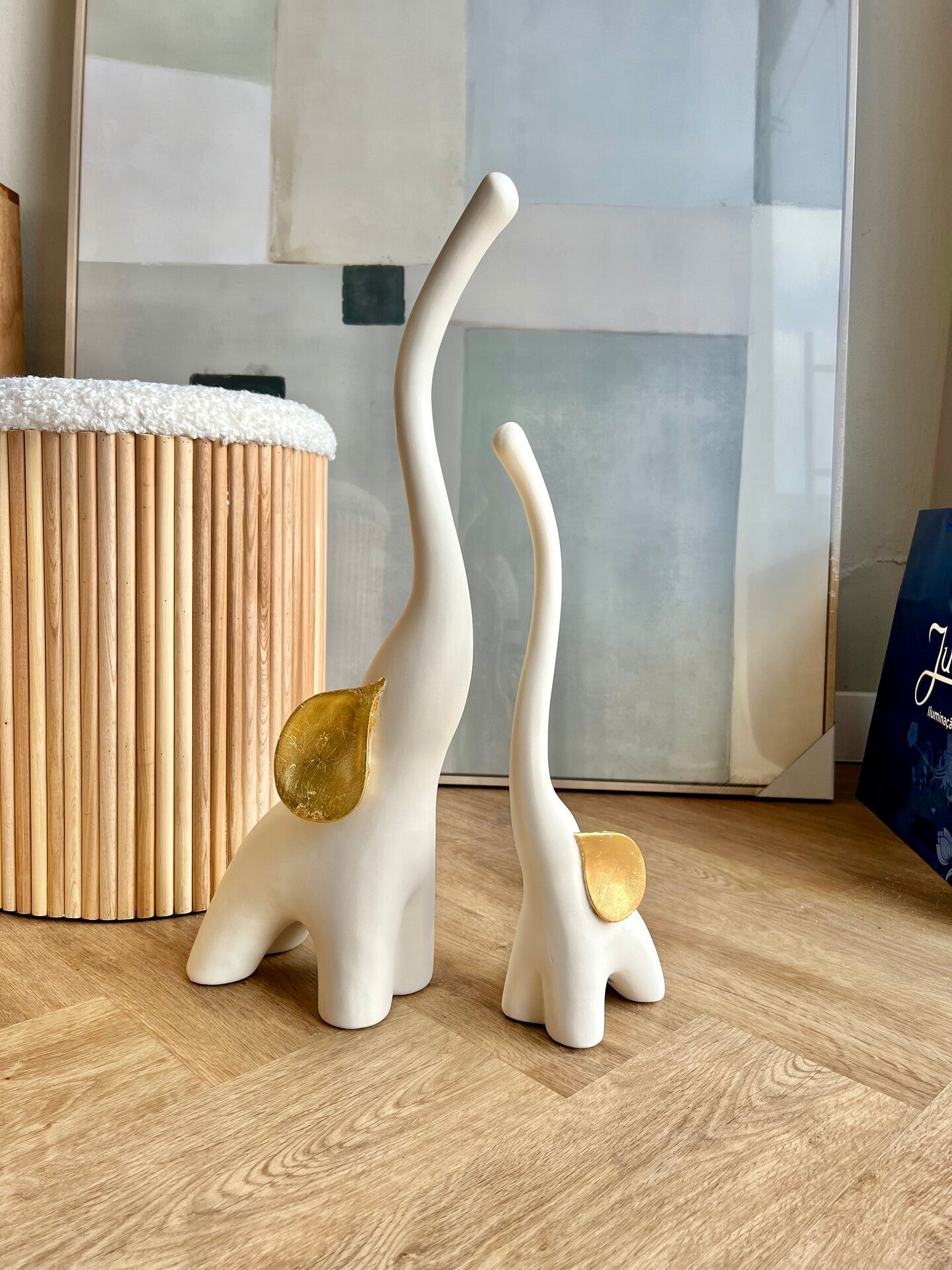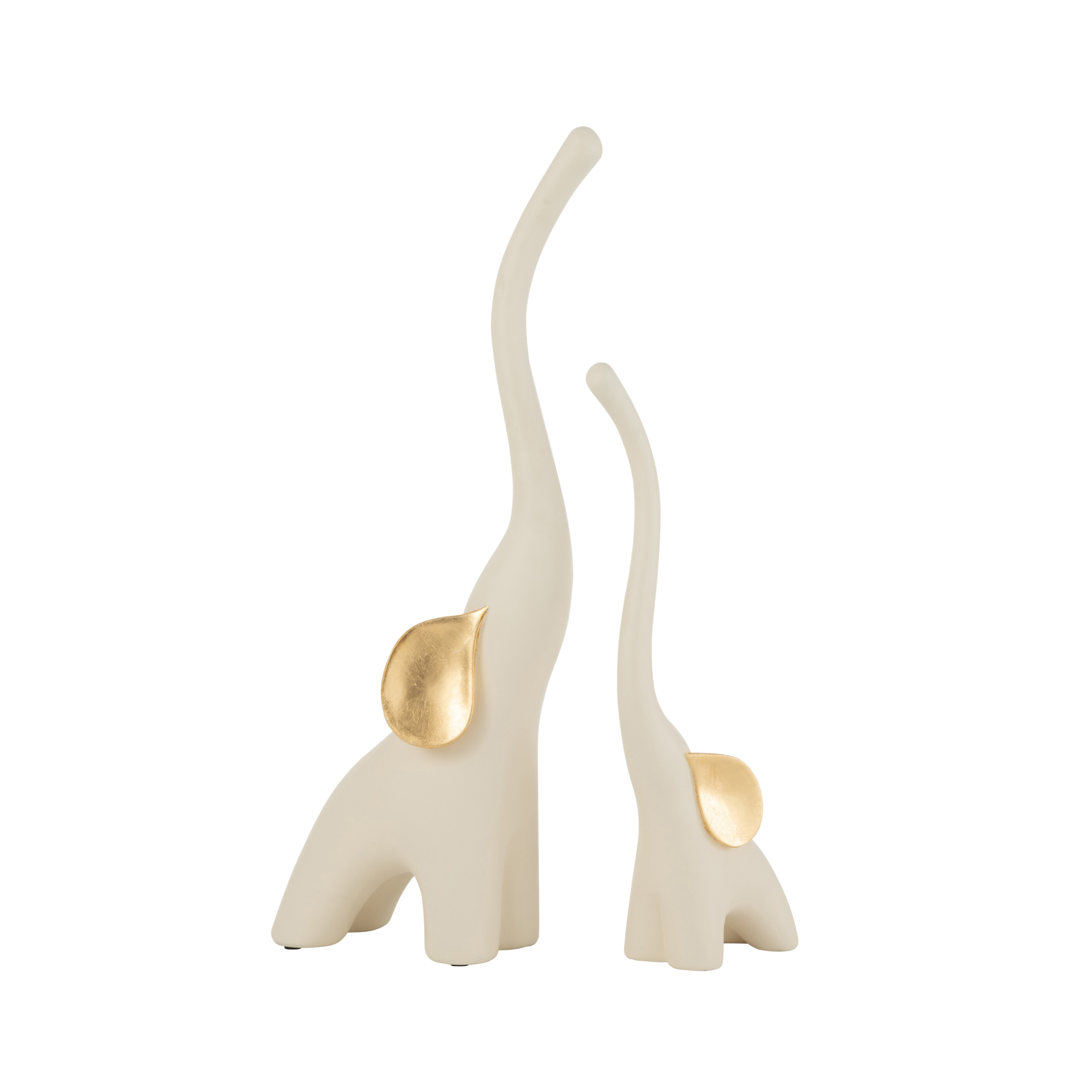 Decore a sua casa com a elegância e a simbologia atemporal destes magníficos elefantes decorativos em resina. Disponíveis em dois tamanhos distintos, estas peças destacam-se pela tonalidade suave de bege claro, realçada por orelhas douradas que conferem um toque de sofisticação. Os elefantes, símbolos de força, sabedoria e boa sorte, incorporam uma energia positiva que se reflete ideias para ter em casa. Coloque essas diferenciadas peças para atrair boa fortuna e proteção. Seja na sala de estar, no quarto ou no escritório, a presença destes elefantes esculpidos em resina adicionará uma atmosfera de serenidade e prosperidade.