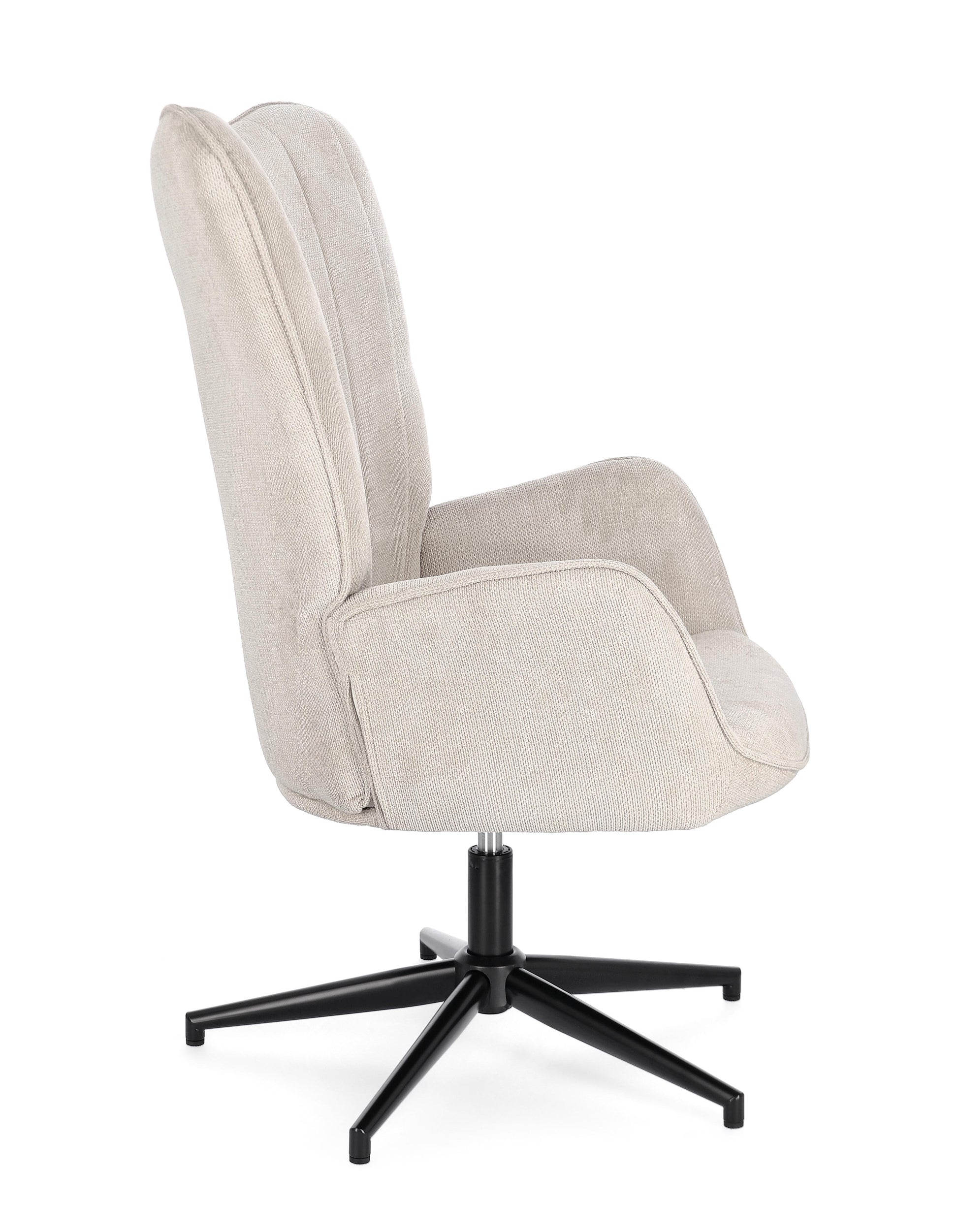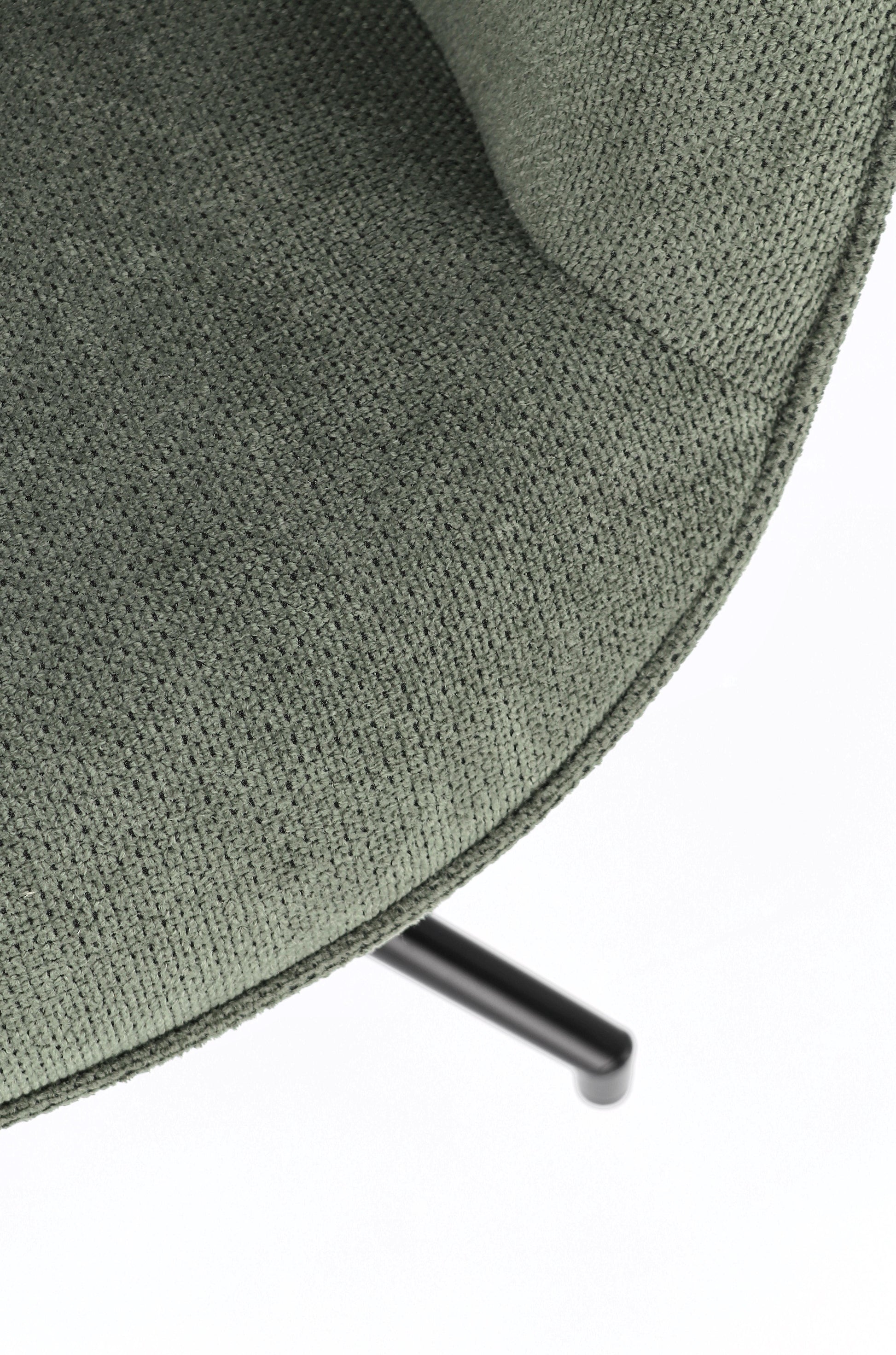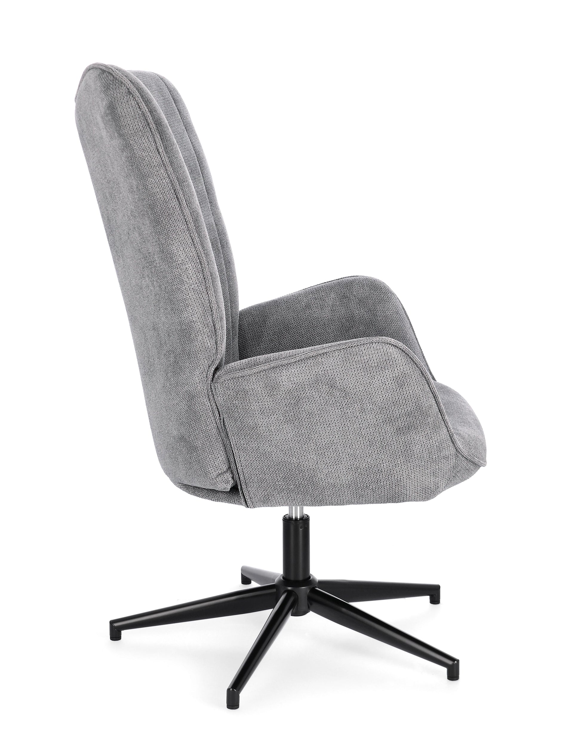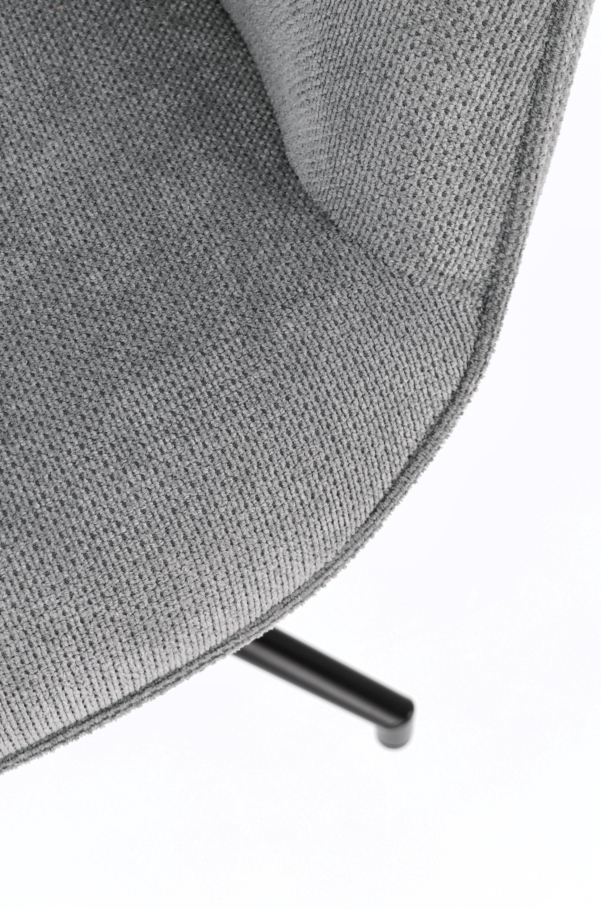 Estrutura em aço. Pernas em aço com acabamento em pó. Revestimento 100% poliéster. Enchimento em espuma de poliuretano. Base giratória 360°.