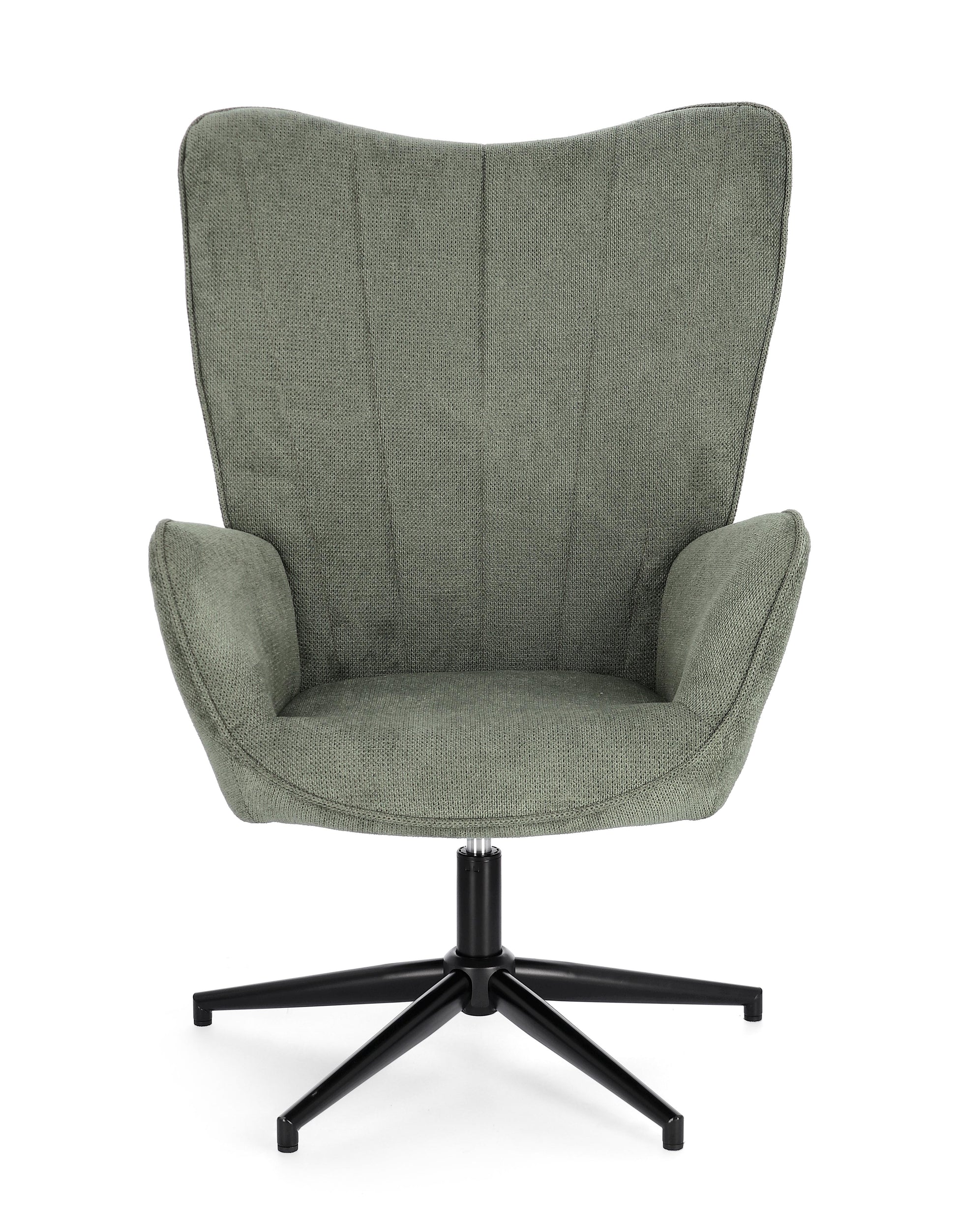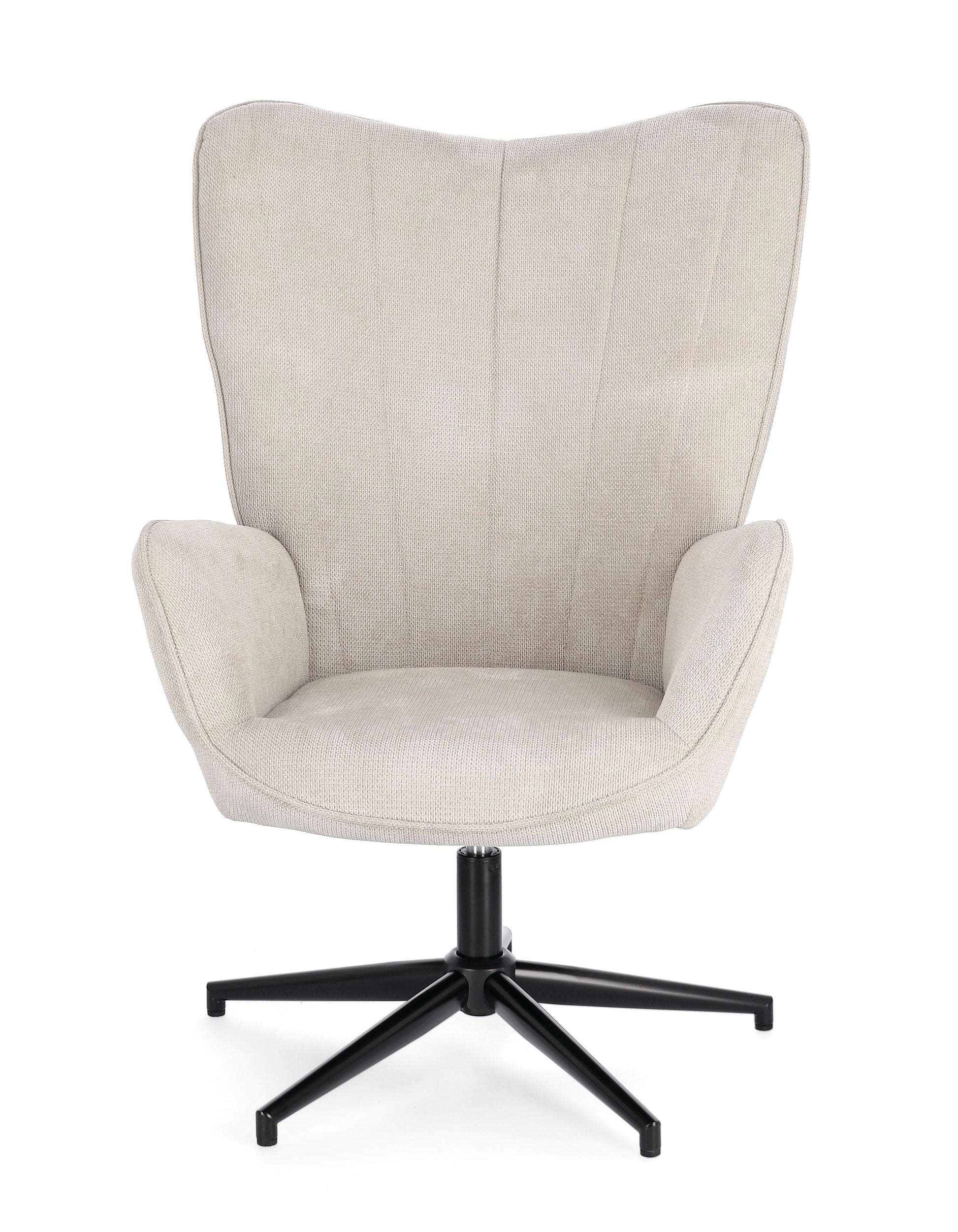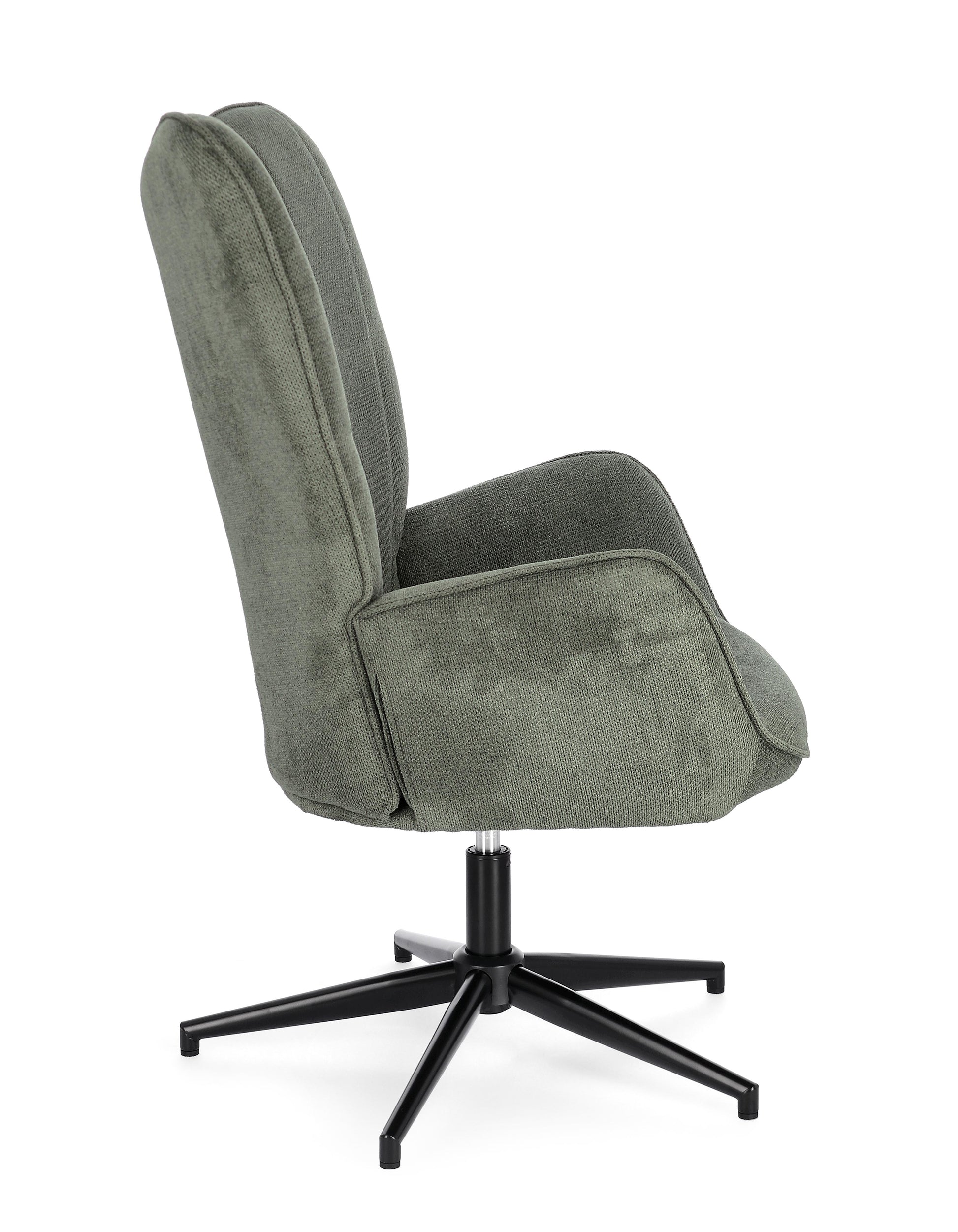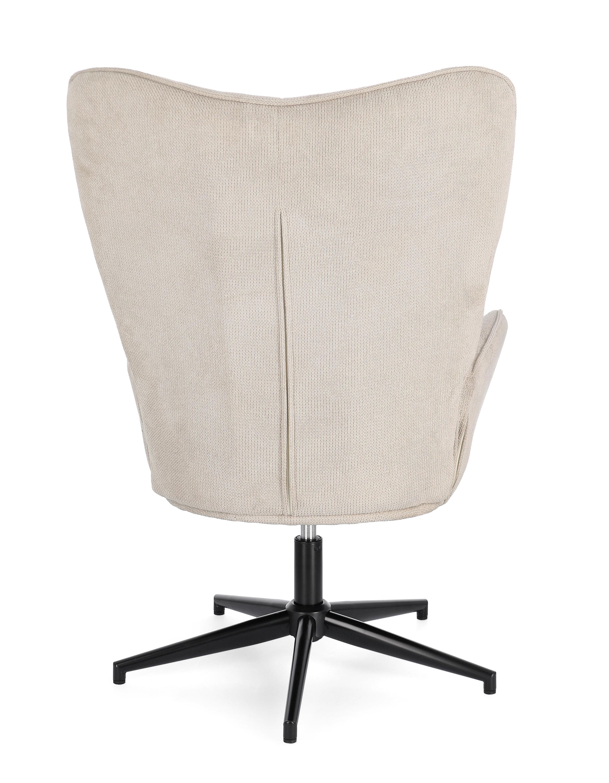 Estrutura em aço. Pernas em aço com acabamento em pó. Revestimento 100% poliéster. Enchimento em espuma de poliuretano. Base giratória 360°.