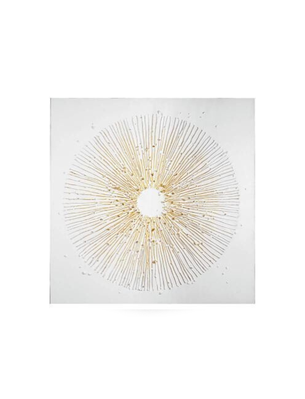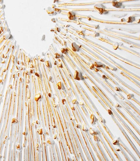 Quadro feito com a técnica de acrílico sobre tela. Uma pintura minimalista e refinada em tons de branco puro com detalhes em dourado. Ideal para quem gosta de mobiliar no estilo glamouroso.