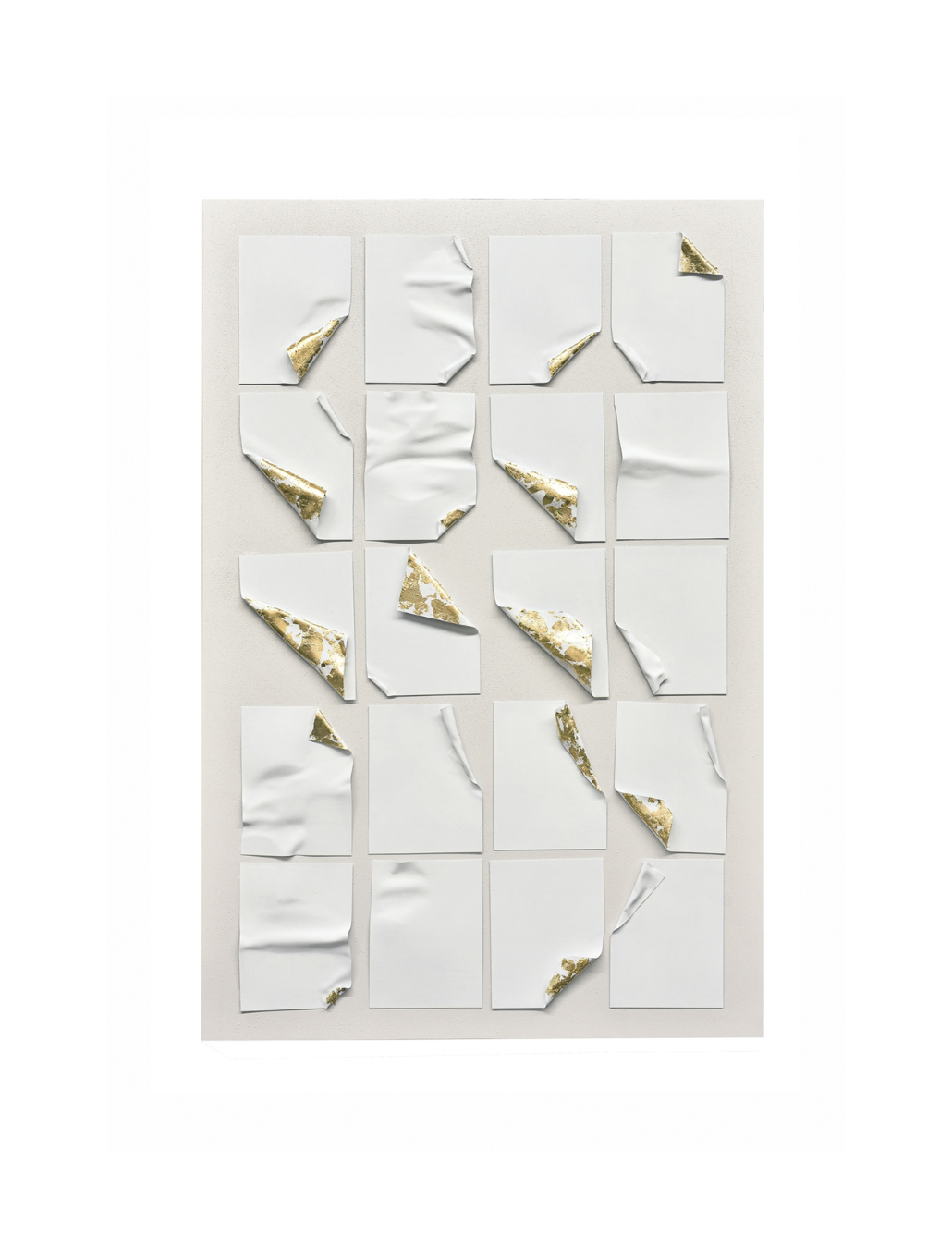 Quadro feito com a técnica de acrílico sobre tela. Uma pintura minimalista e refinada em tons de branco puro com detalhes em dourado. Ideal para quem gosta de mobiliar no estilo glamouroso. Pode utilizar na horizontal ou na vertical.