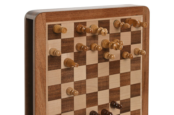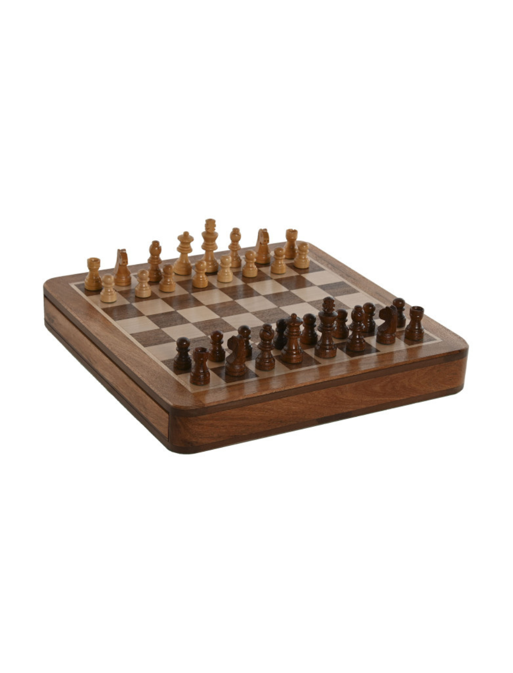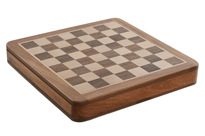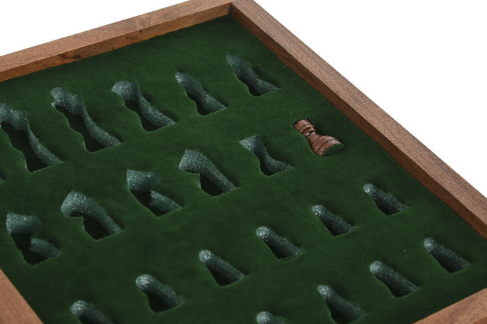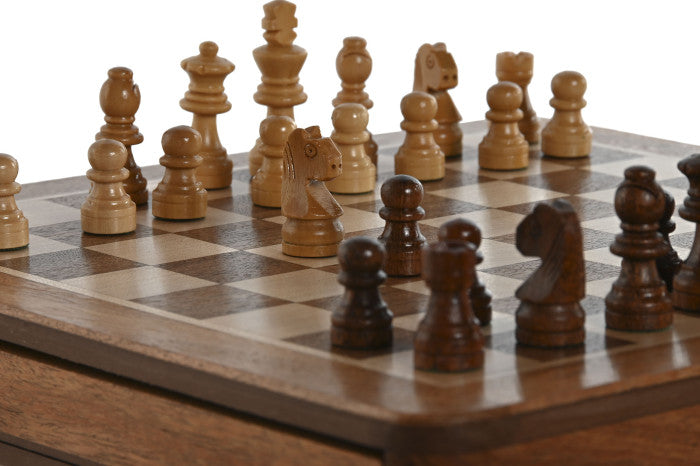 Caixa Jogo Xadrez, um excelente jogo de estratégia num incrível e clássica caixa de madeira, com veludo verde na gaveta interior onde estão incluídas todas as peças.
