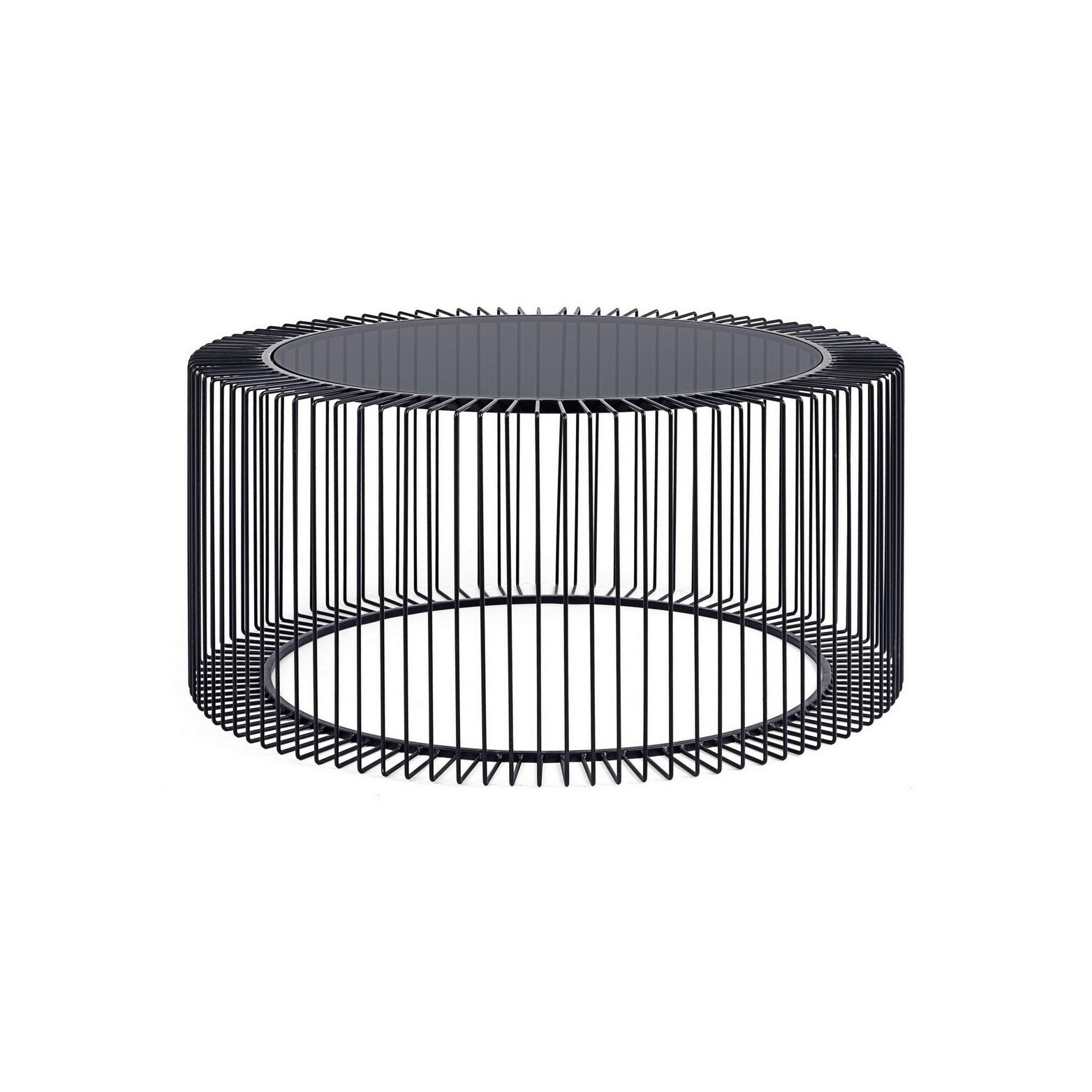 Mesa Centro Kieran Preto, com tampo de vidro temperado, diâmetro 80cm.