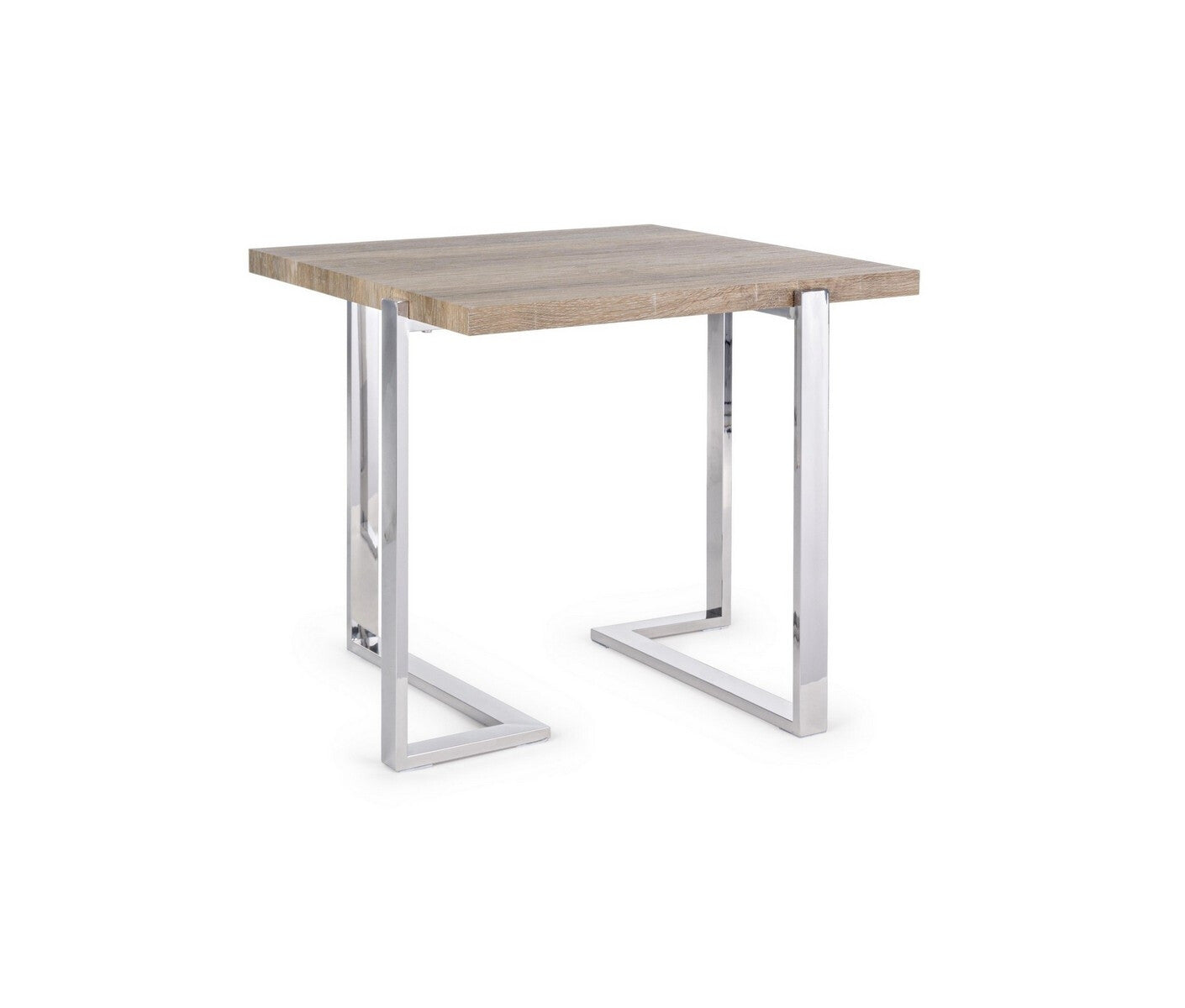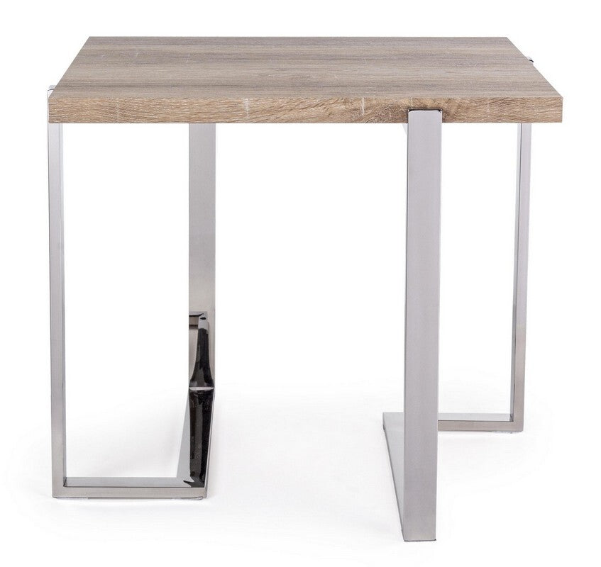 Mesa Quadrada Ismael 60x60cm, com estrutura de aço inoxidável, placa de MDF coberta com melanina. Uma elegante mesa de centro ou de apoio.