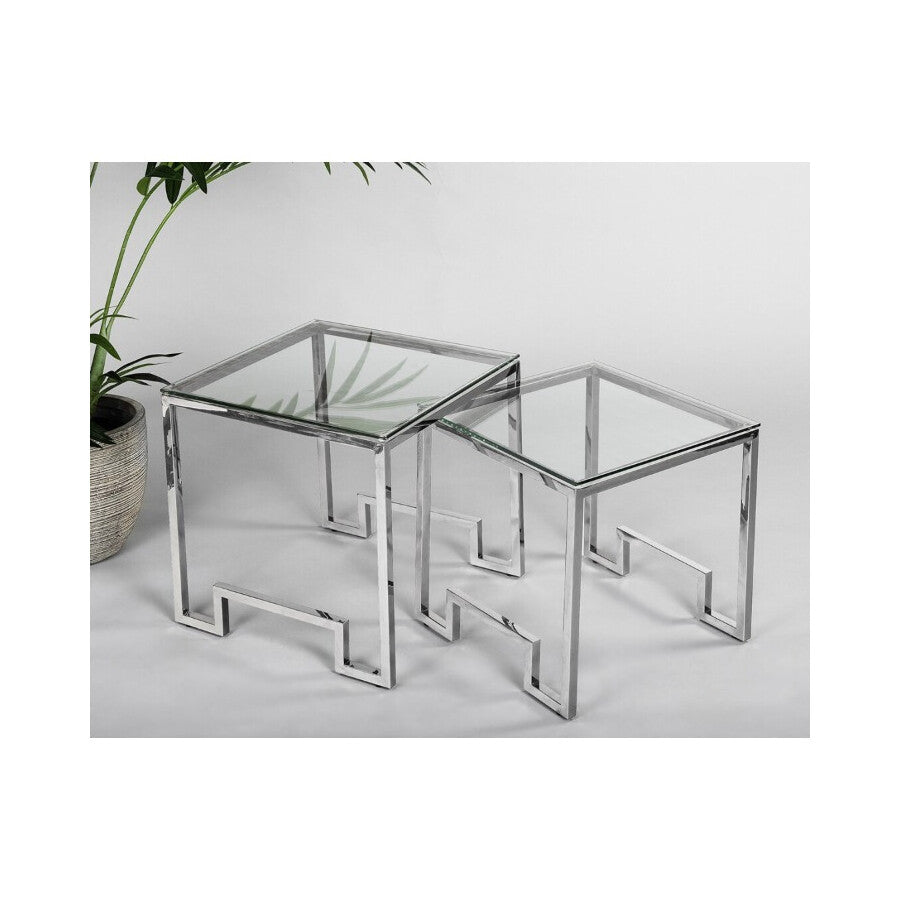 Mesas de Apoio Quadradas em metal cromado e com tampo de vidro. Uma peça de mobiliário com muito caráter e personalidade esmagadora que será uma maravilha para os sentidos. Ideal para colocar em salas de estar, corredores e quartos, como mesa de cabeceira. A Mesa Apoio combina perfeitamente o vidro do topo com o metal das sua base, um acabamento da base que reforça o seu design atrativo.