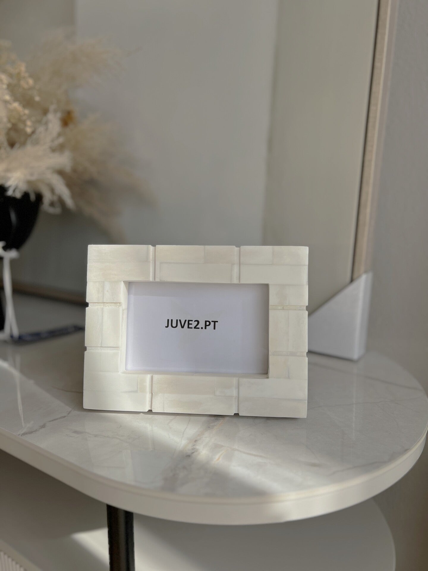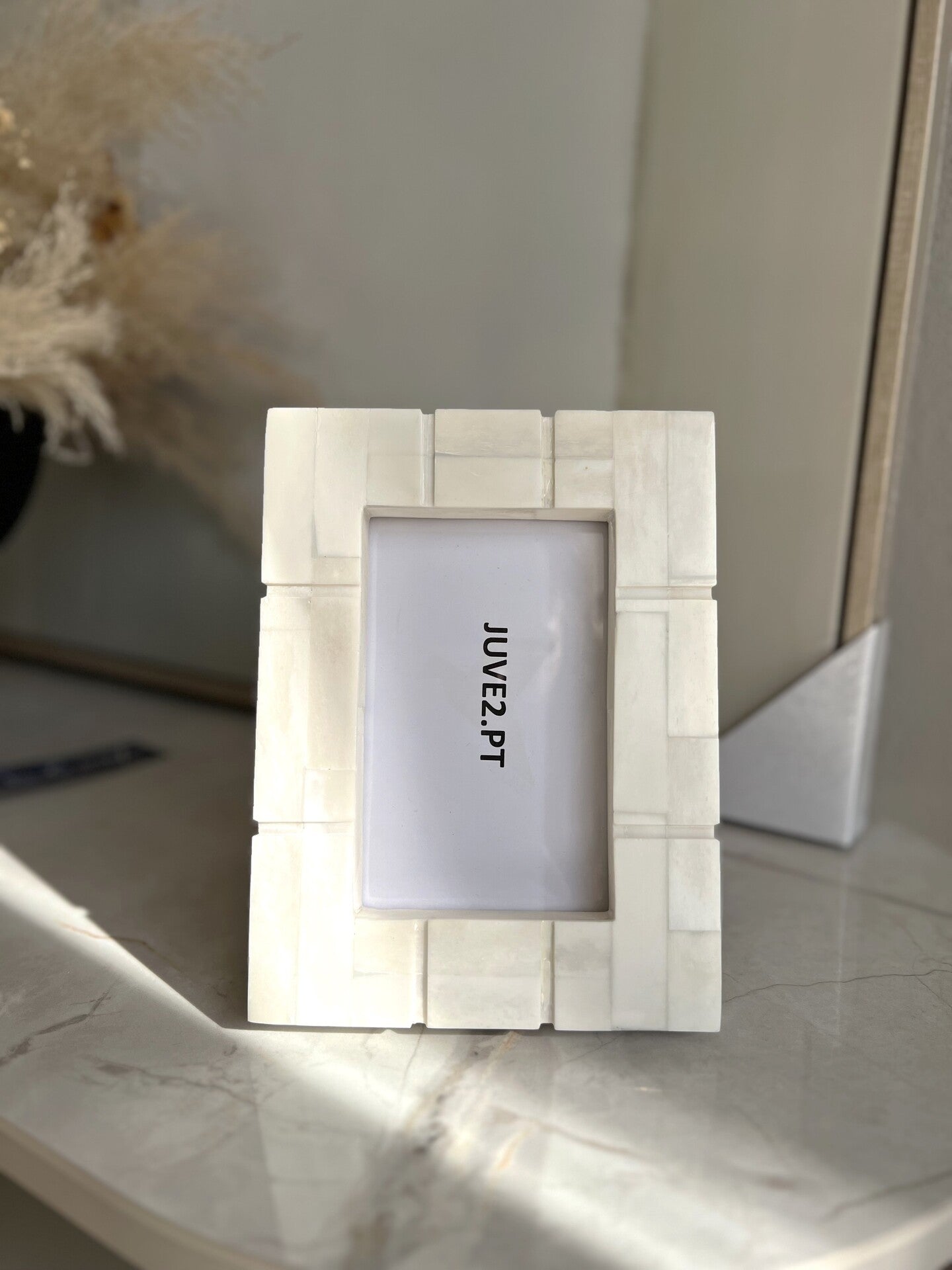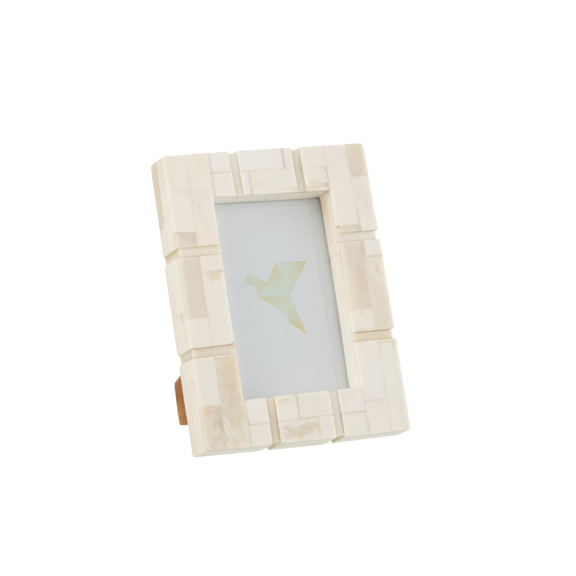 Moldura retangular de madeira e Madre Pérola Creme 14,5X19 cm.